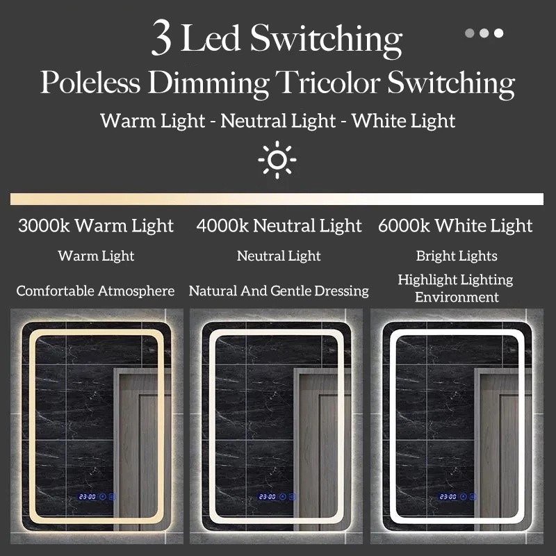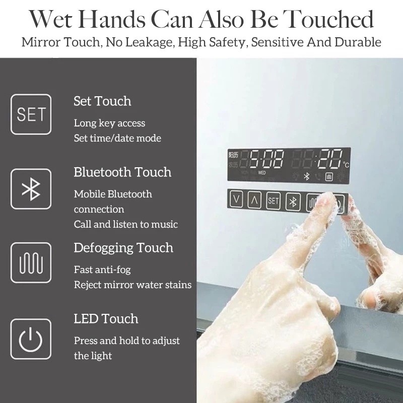 MNS (SG Stock) Bathroom Mirror Wall Mirror Smart Makeup Mirror Toilet Mirror Vertical Led with Light Bathroom Touch Screen Wall Mounted Bathroom Smart Mirror