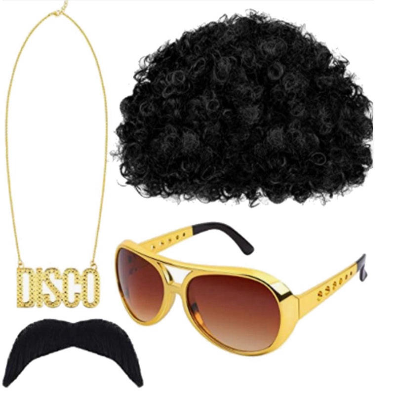 LXSM Hip Hop Costume Set Funky Afro Wig Sunglasses Peace Sign Necklace For 50/60/70s Theme Party