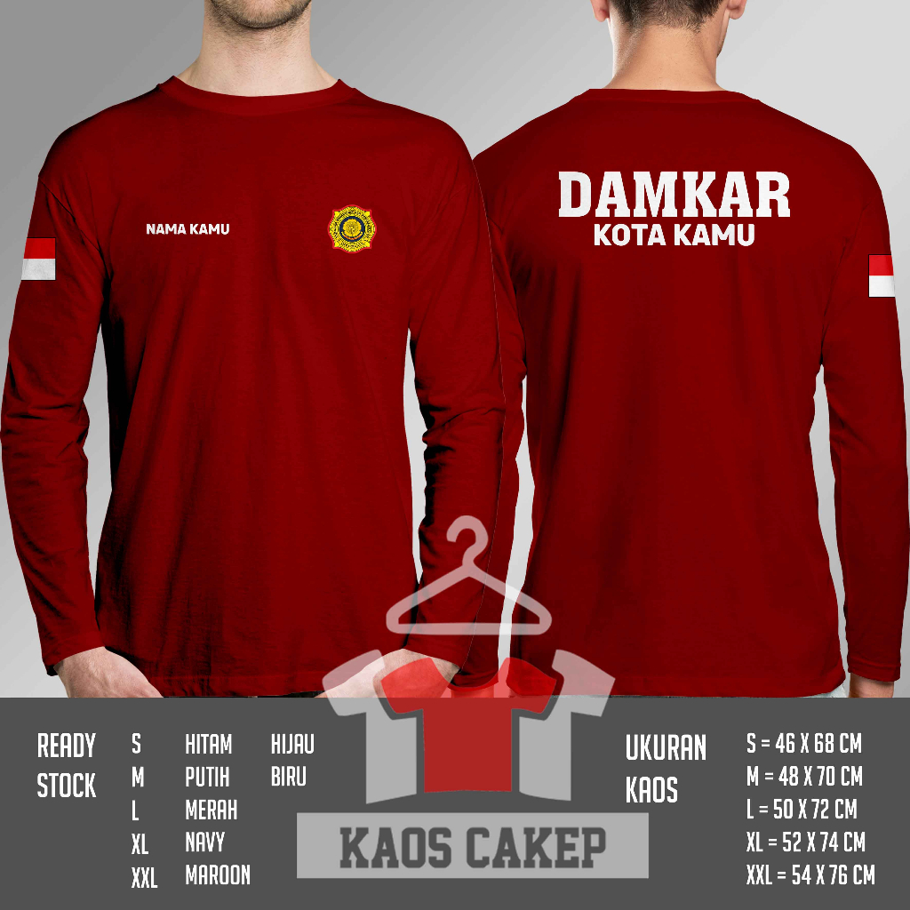 Free DAMKAR Firefighter T-shirt Your Name and City Long Sleeve Distro Shirt