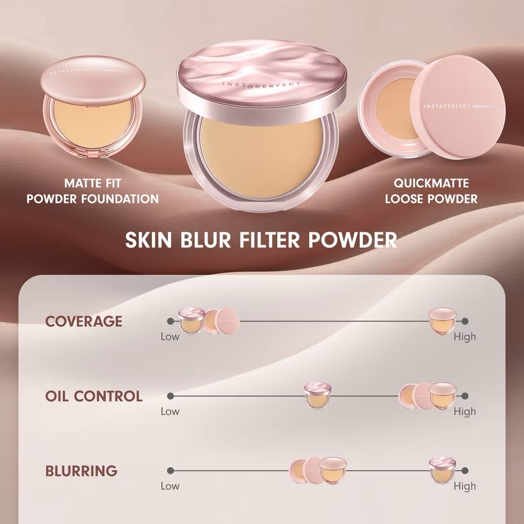 INSTAPERFECT Skin Blur Filter Powder | Compact Face Powder 10g | Setting Powder Poreless Blur Satin
