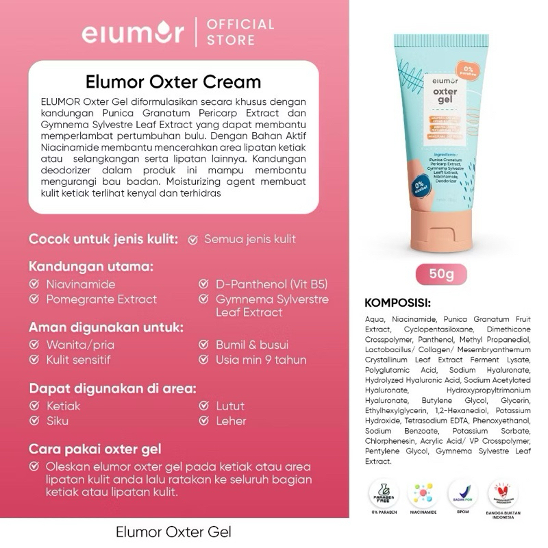 Elumor Oxter Gel 50g | Deodorant Gel to Brighten Underarms