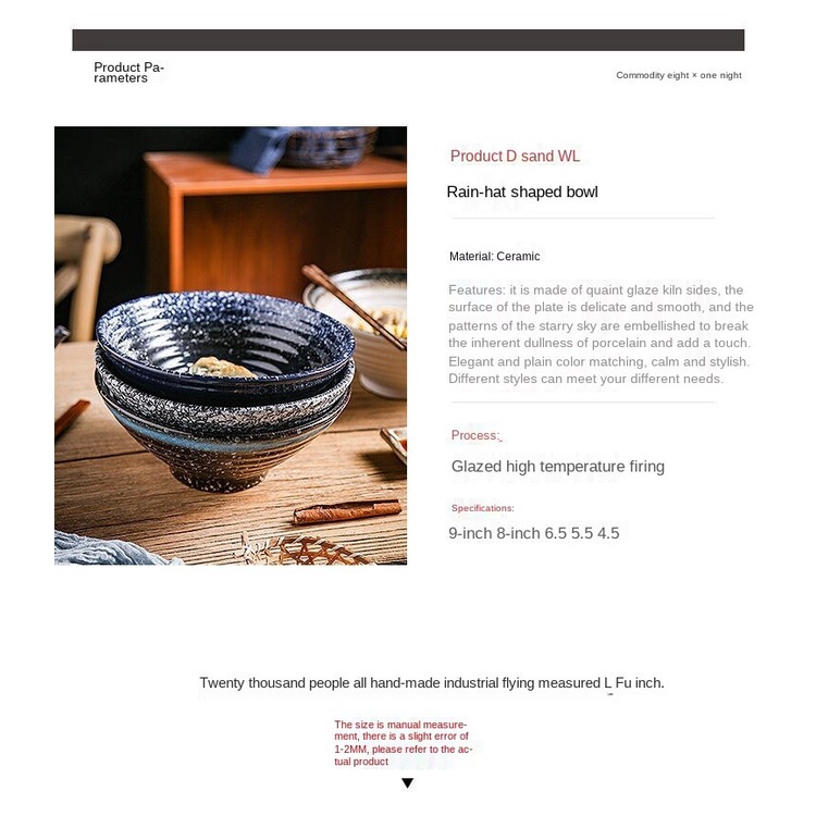 Ceramic Japanese Rice Bowl Ramen Soup Bowl Student Dormitory Ceramic Japanese Oversized Capacity Creative Home-Japanese Ramen Bowls Dishware Soup Bowl Noodle Bowl Restaurant