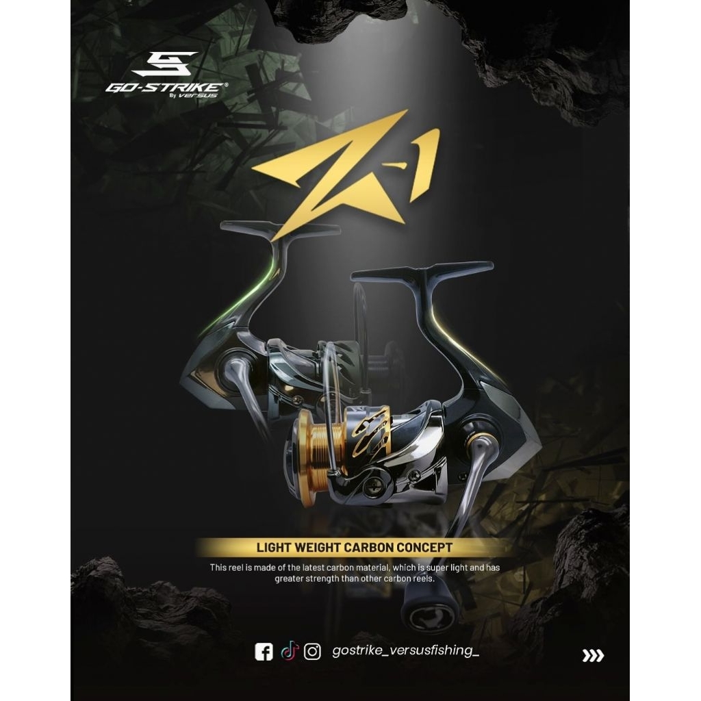 Reel GOSTRIKE BY VERSUS Z-1 SW 1000 2000 3000 4000 CARBON BODY & ROTOR (WATER RESISTANT) - Power Handle