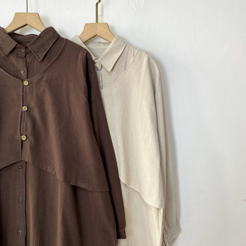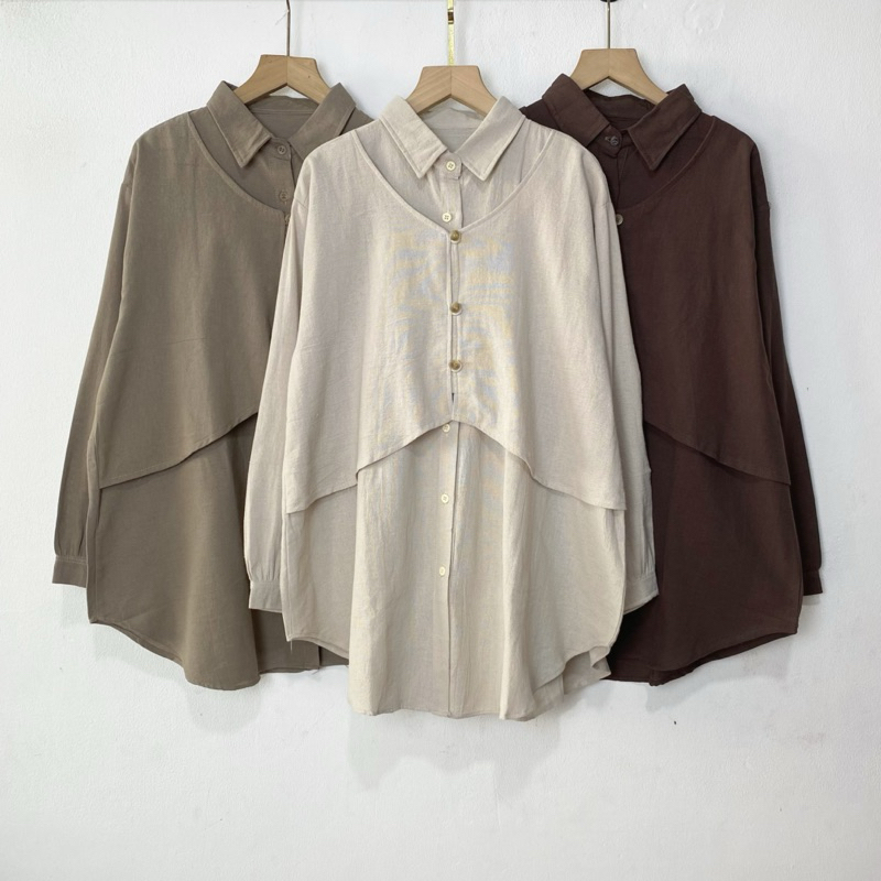 KEMEJA Renata Blouse LD 120 Plain Basic Vest Shirt Premium Linen Women's Top Women Blouse