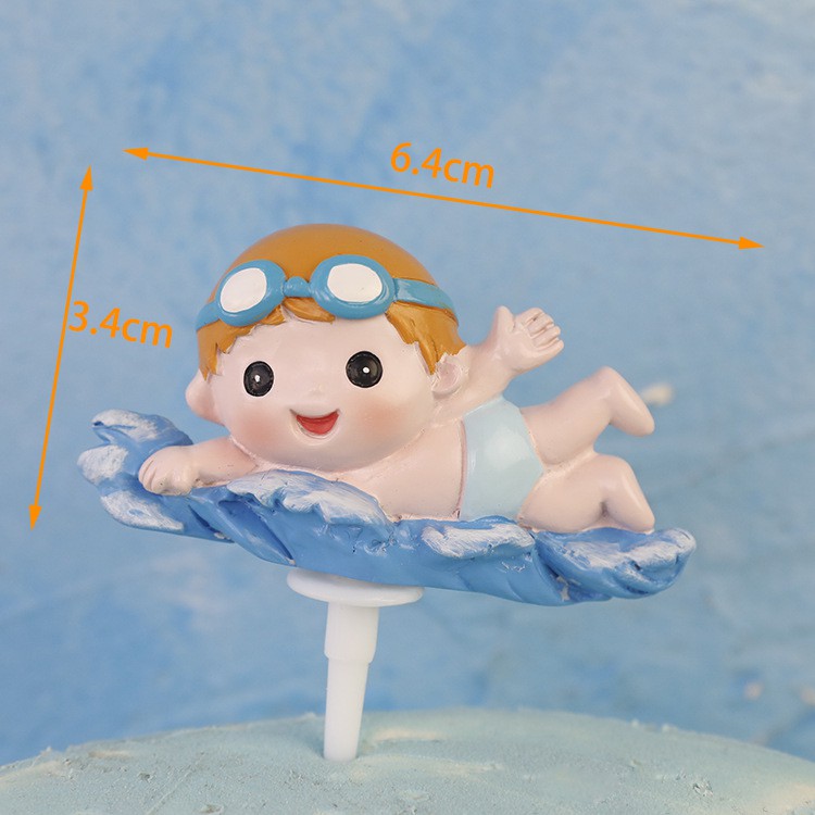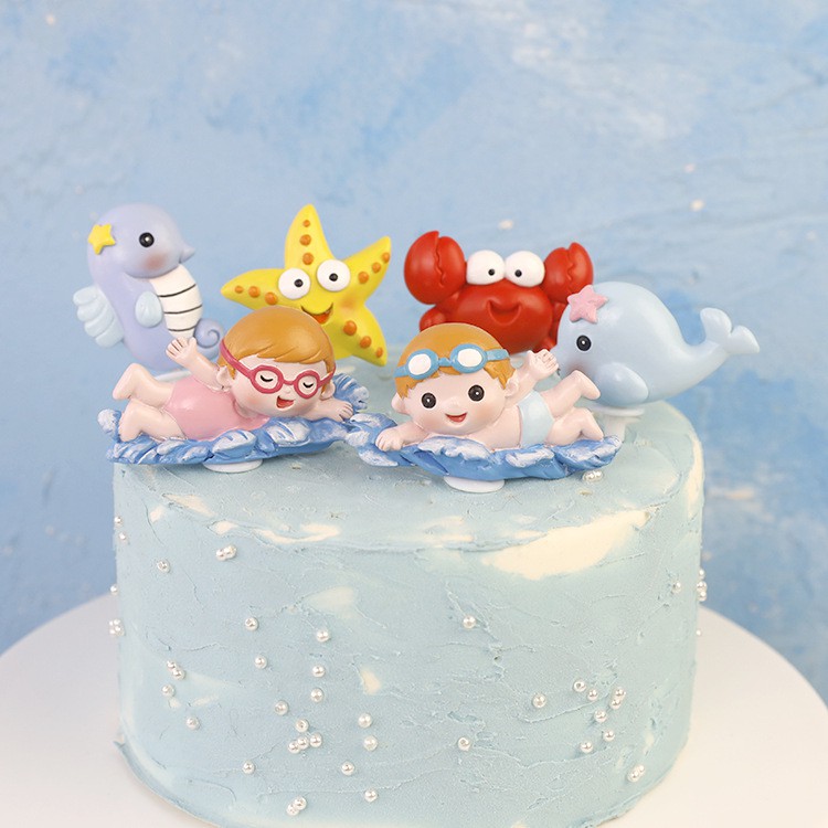 Marine Sea Aquatic Animals, Dolphin, Boy Swimming Cake Topper Decoration Kek Hiasan 海洋动物蛋糕装饰 Edible Cake Decoration
