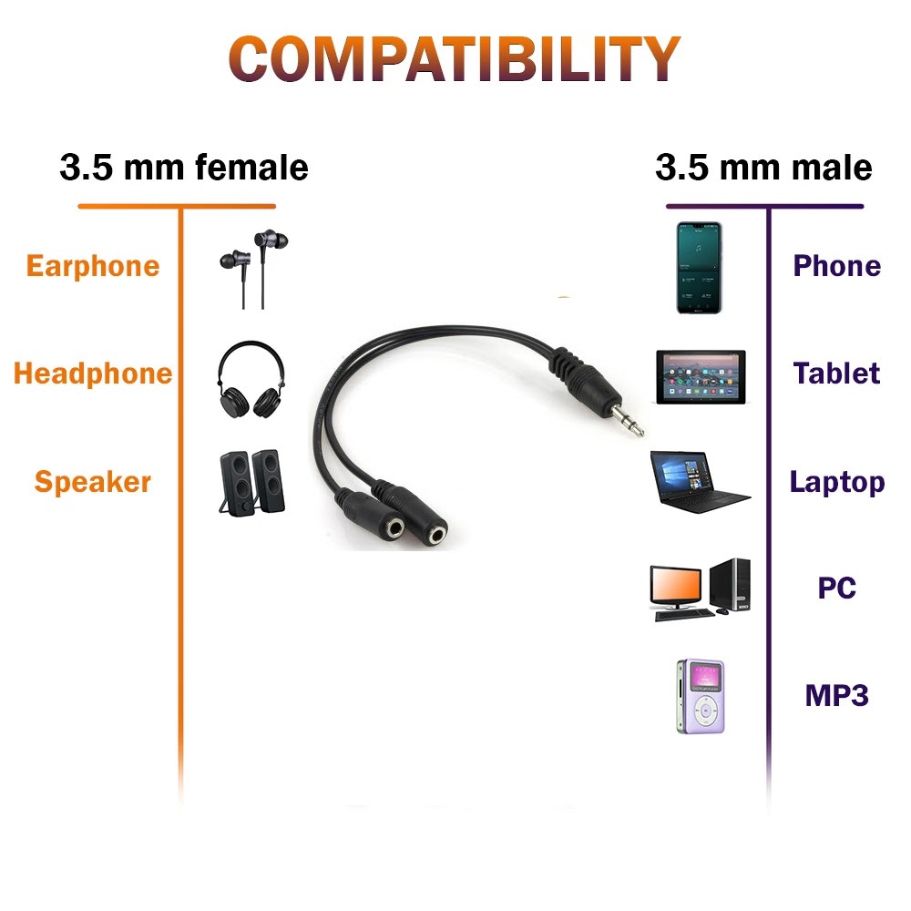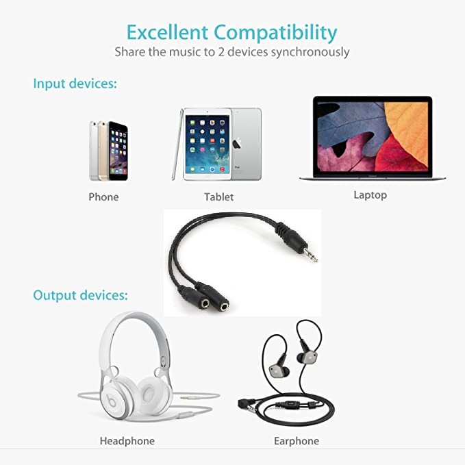 Audio Splitter 3.5mm Jack Earphone Y Splitter Headphone