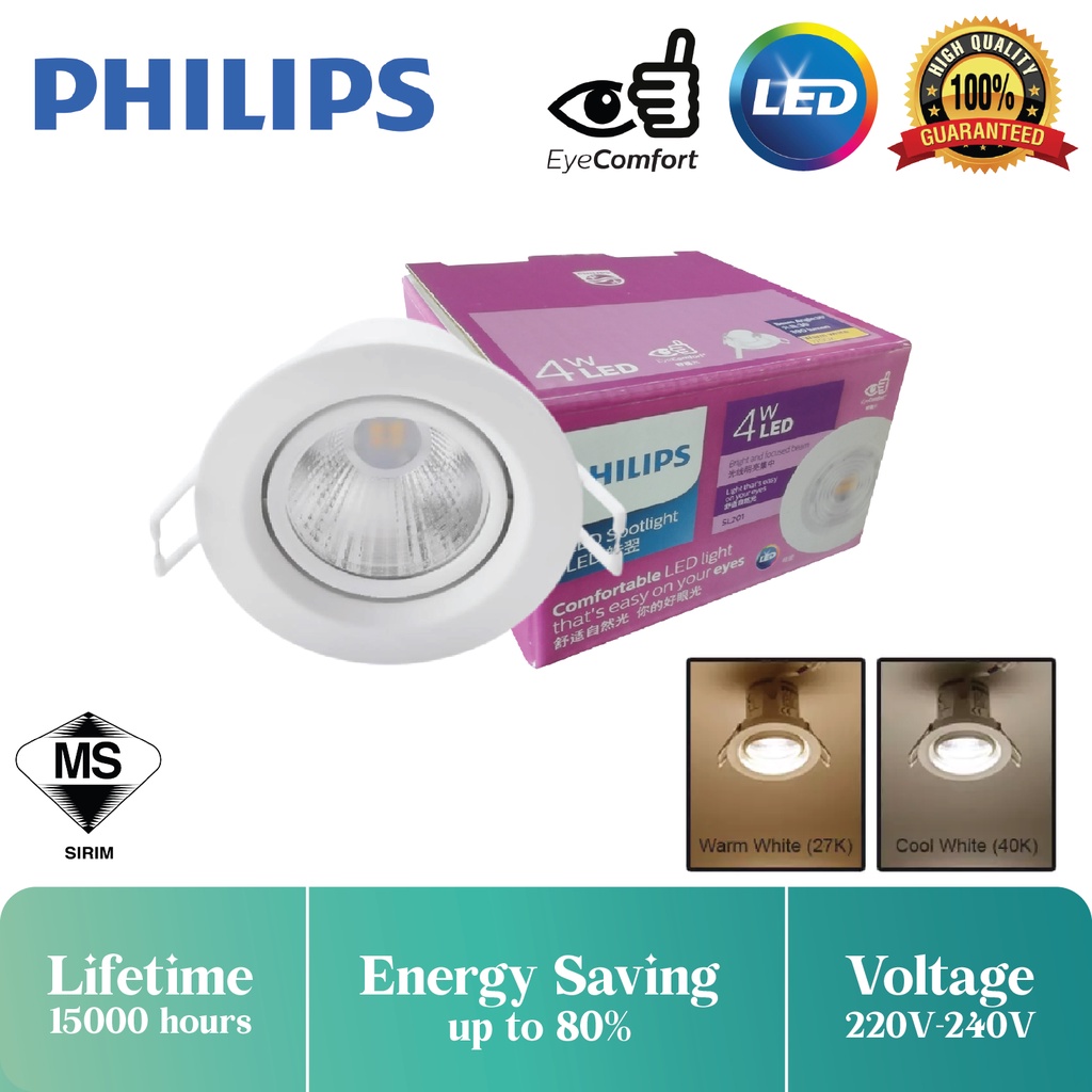 PHILIPS LED Spotlight Eyeball Recessed Spotlight SL201 4W/4.5W Ceiling Light Lampu Siling Beam Angle 24 / 36