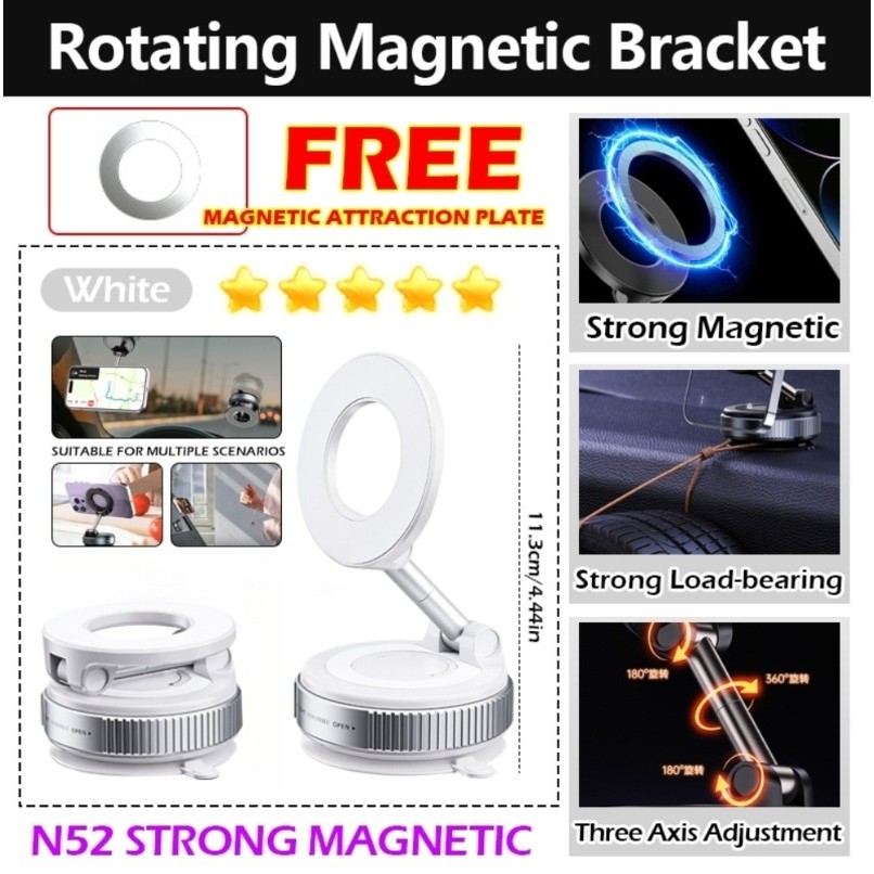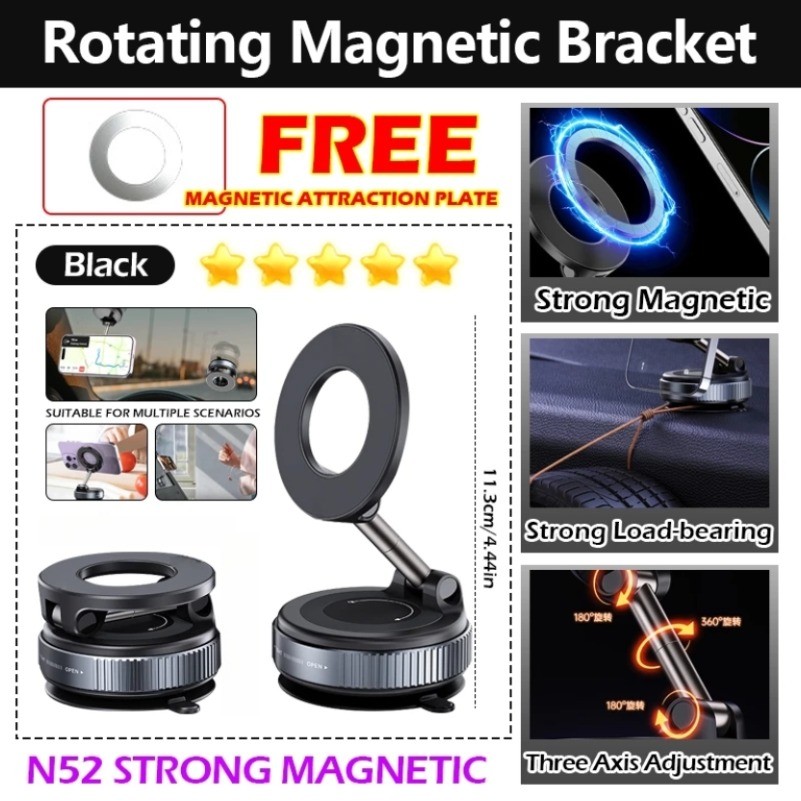 Car Phone Holder Mount Foldable Suction Cup + MagSafe Compatible for Phone Hands-Free Live Streaming
