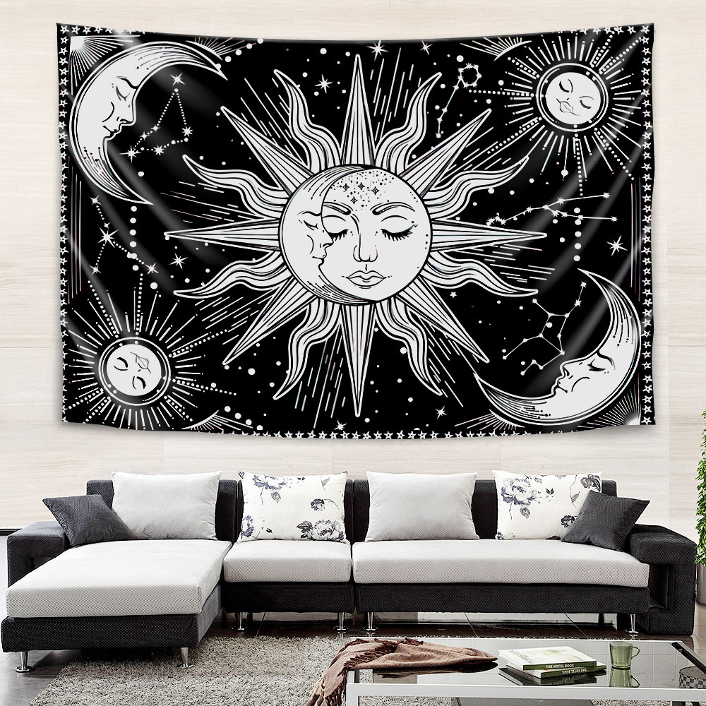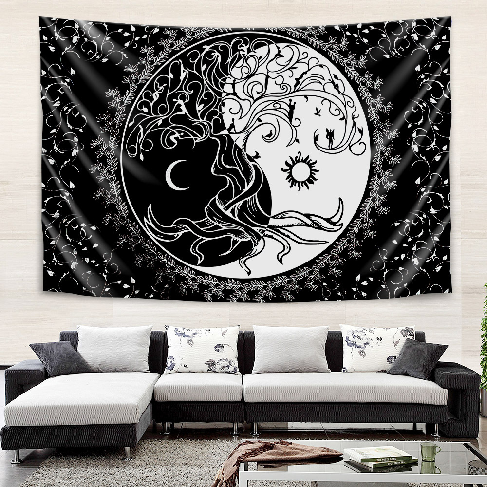 Black and white series Mandala tapestry Living room bedroom decoration background tapestry