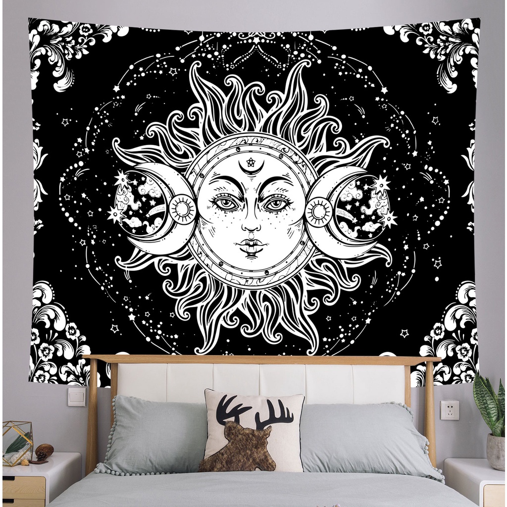 European and American style black and white tapestry Tarot sun hanging cloth wall decorative cloth hanging cloth Children's room decoration Background cloth