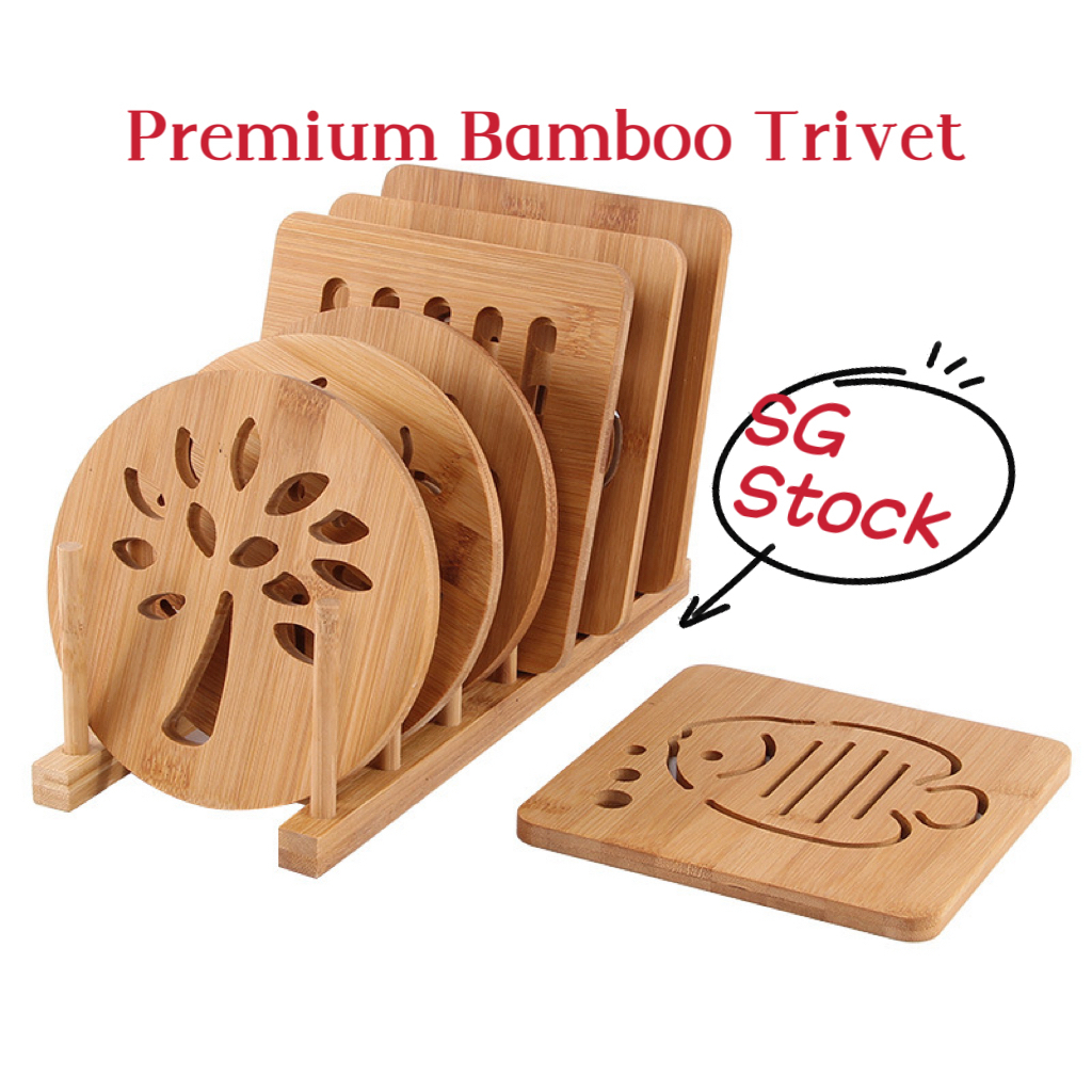 [SG Stock] Premium Natural Bamboo Trivet Heat Insulation Pad for Pot Bowl Dishes Cup Hot Pad