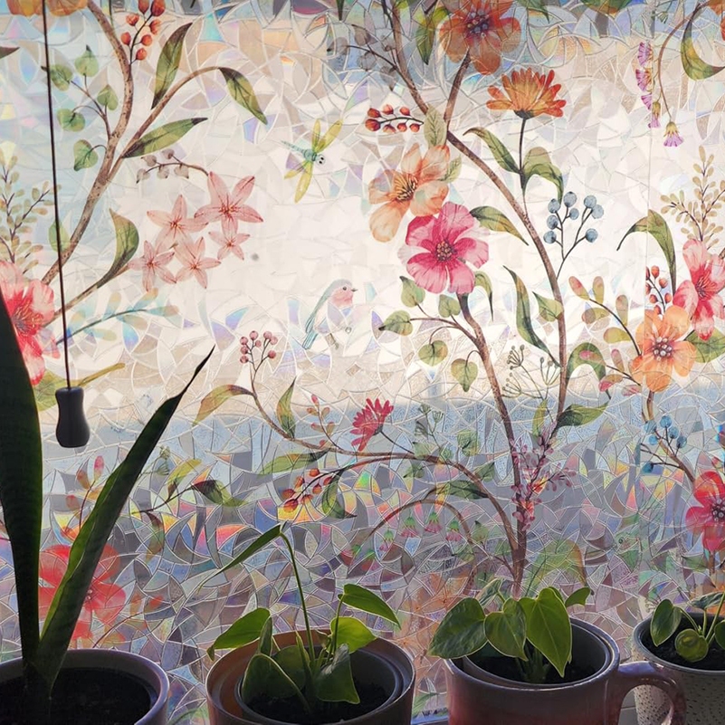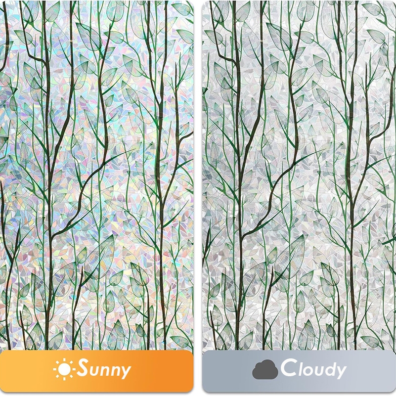 Tinted Sticker for Window Privacy, Window Film 3d Glass Sticker, Non-Adhesive Stained Window Sticker Film