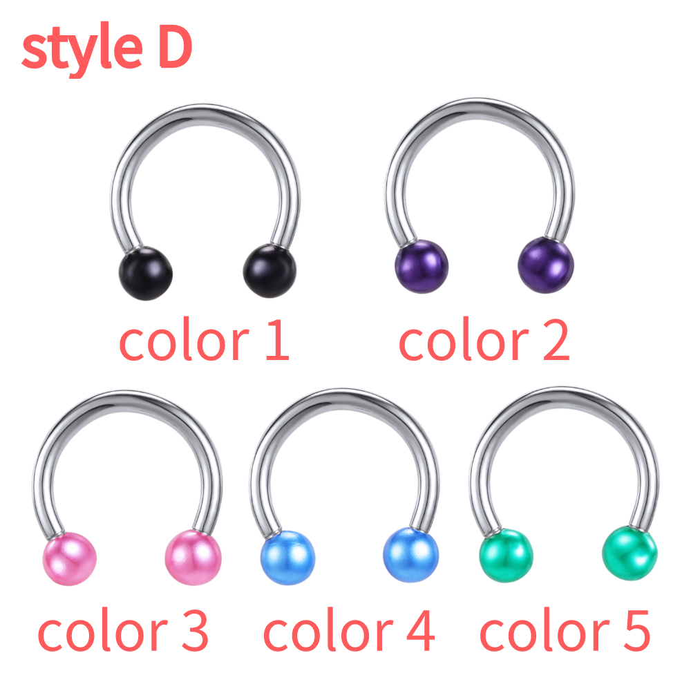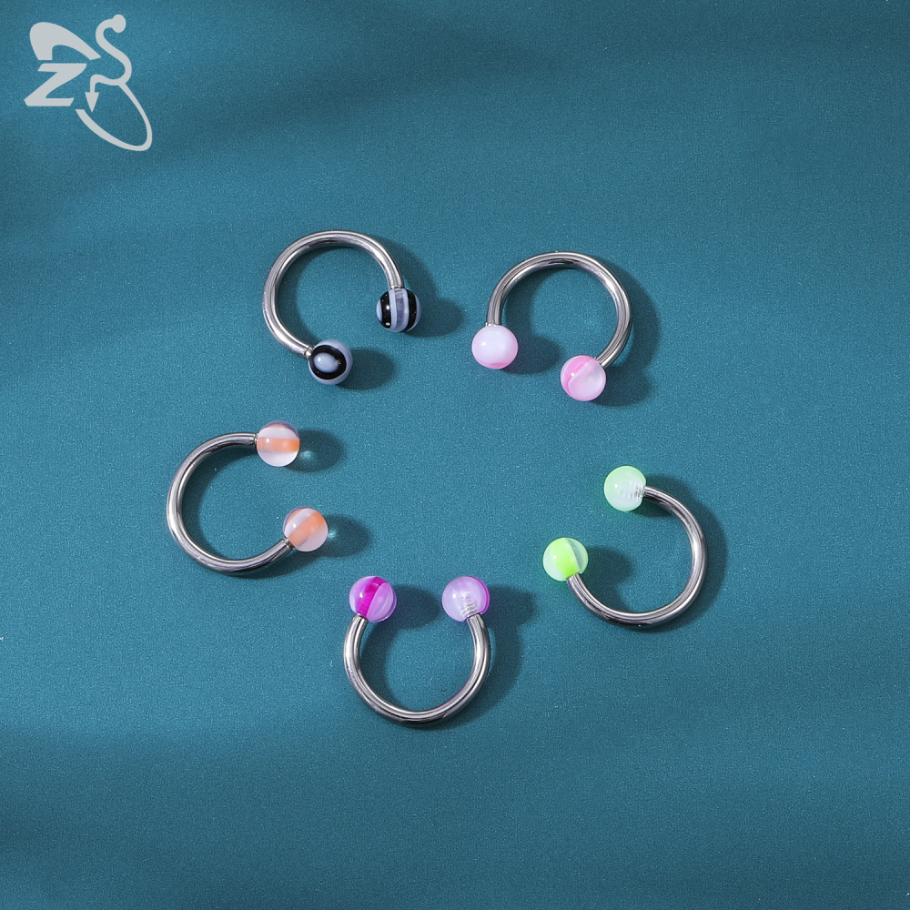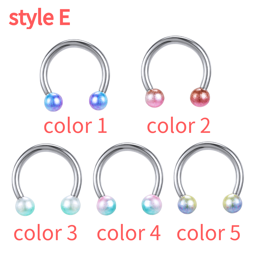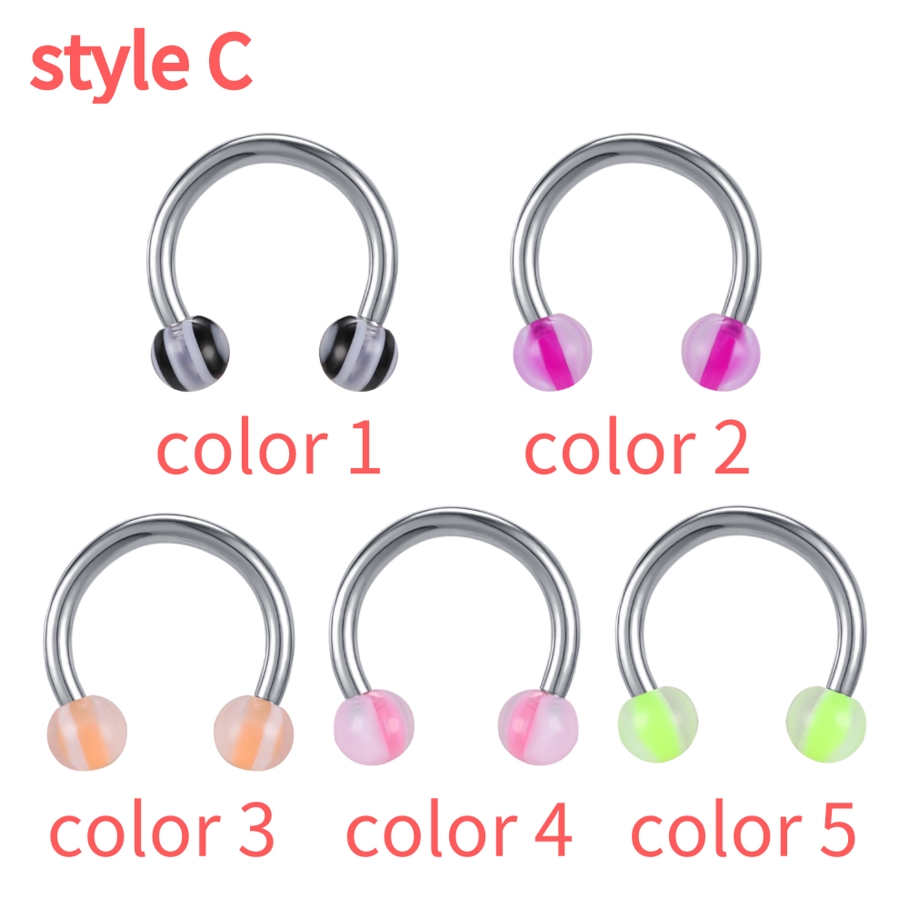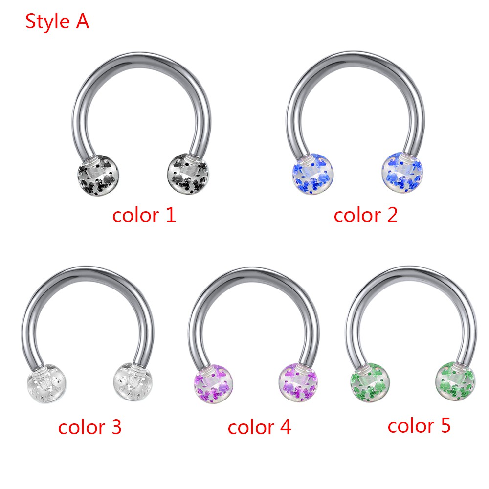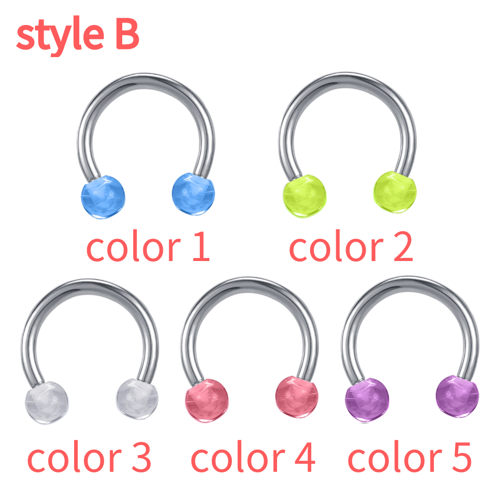 1 PC Colorful Acrylic Ball Nose Ring 16g Stainless Steel Horseshoe Septum Rings 8MM Ear Tragus Cartilage Lip Piercing Jewelry