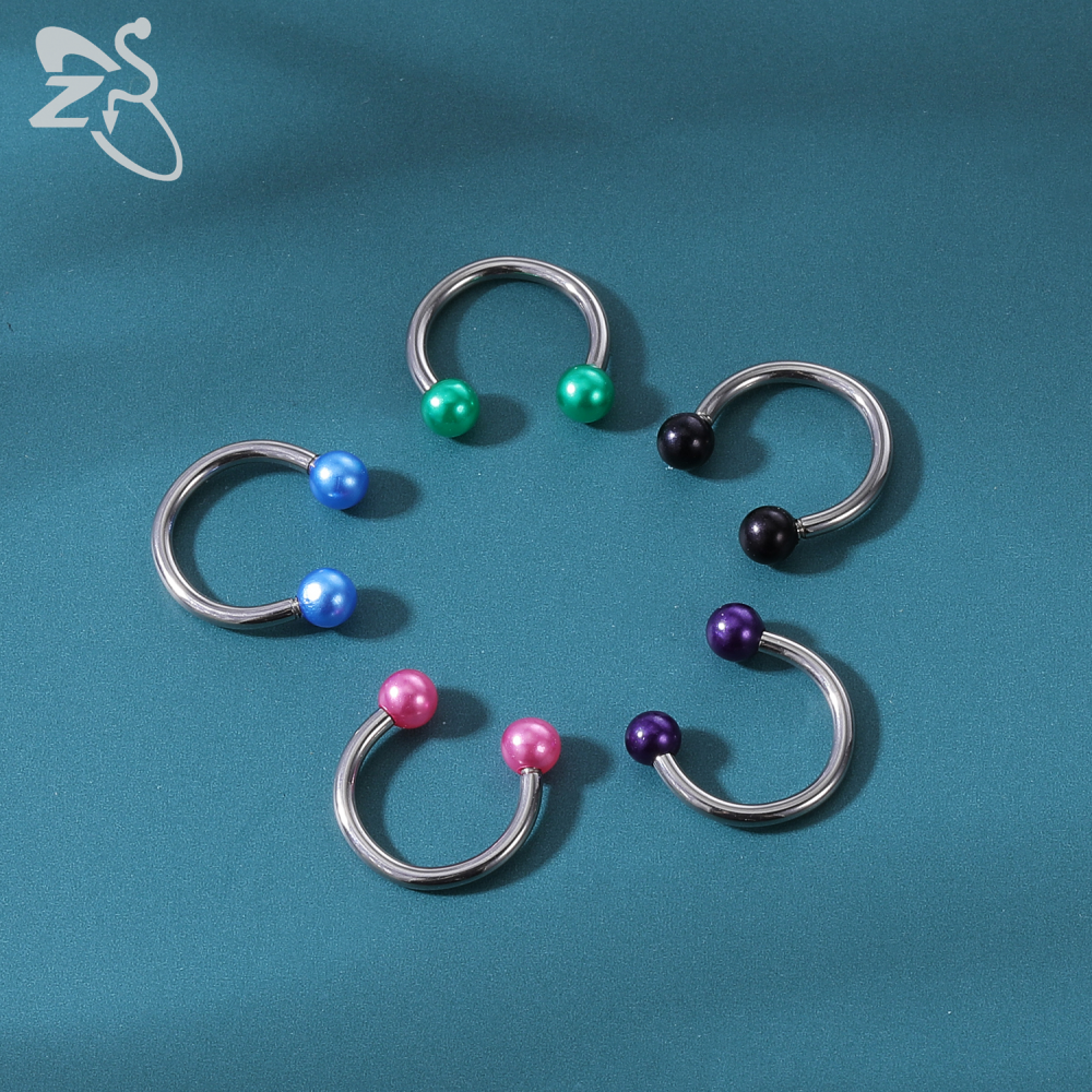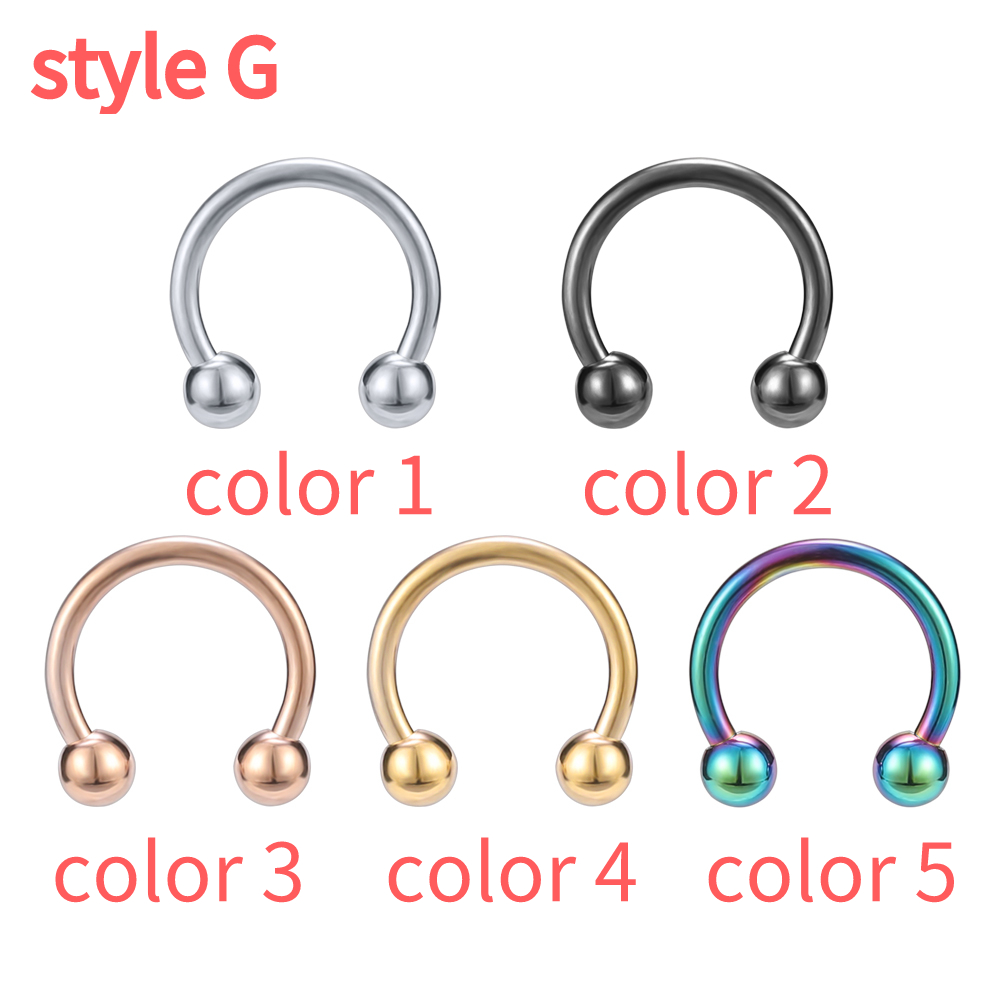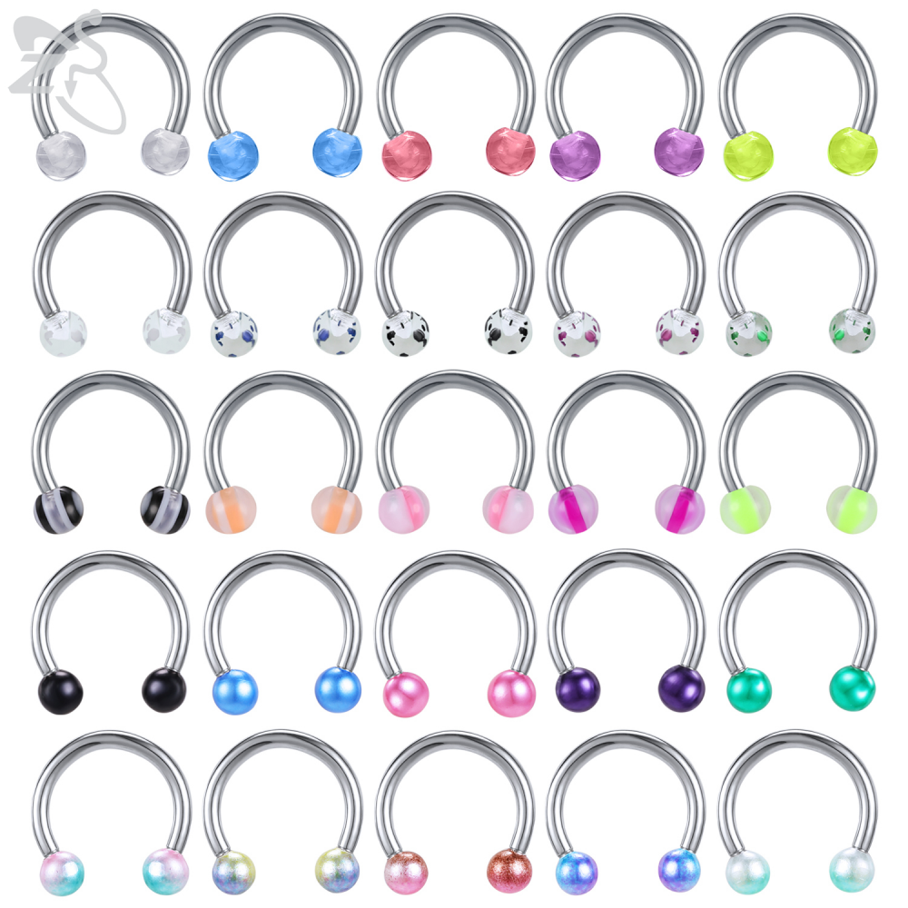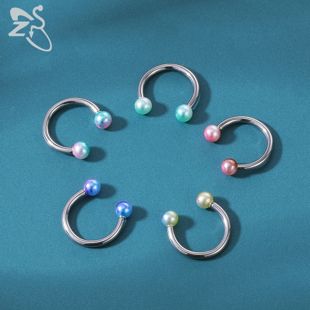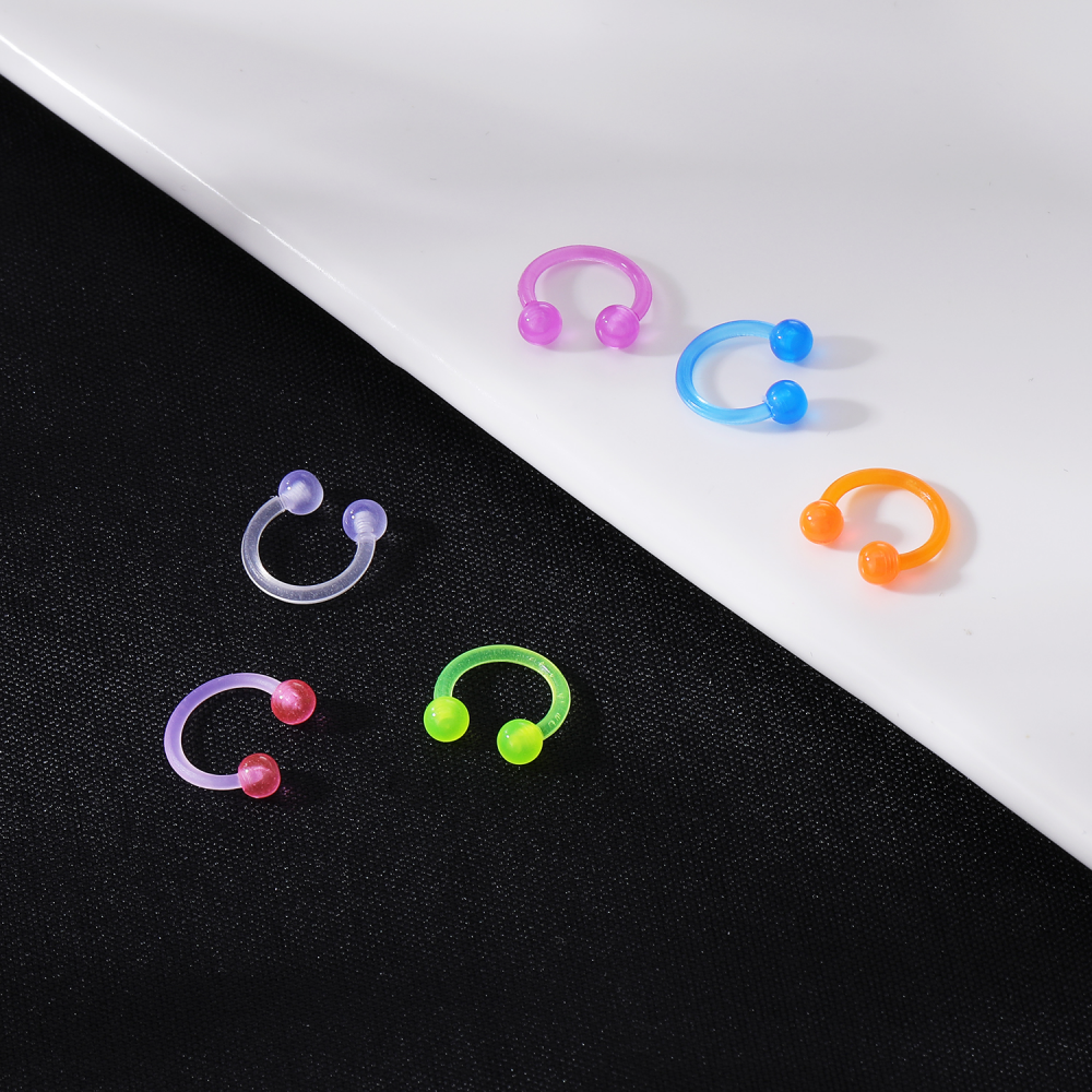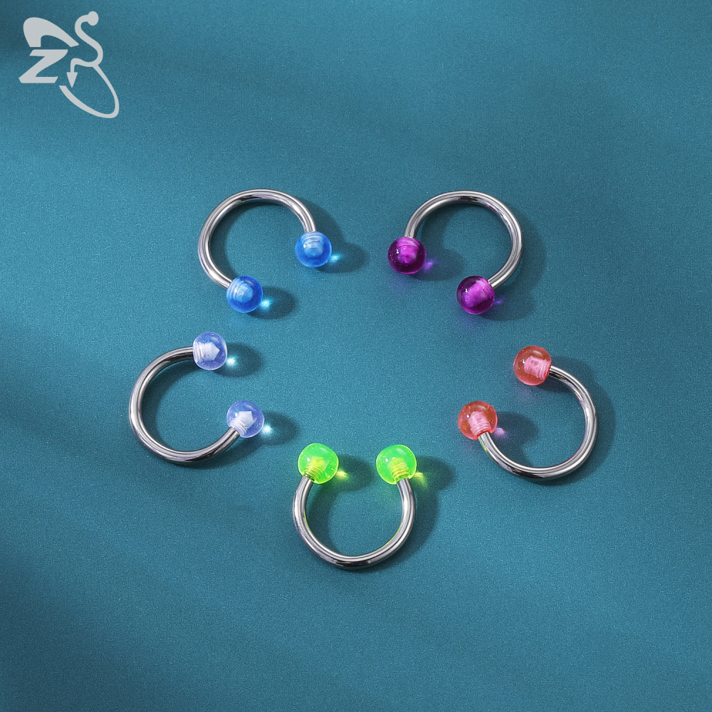 1 PC Colorful Acrylic Ball Nose Ring 16g Stainless Steel Horseshoe Septum Rings 8MM Ear Tragus Cartilage Lip Piercing Jewelry