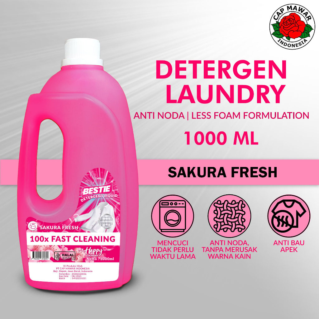 MAWAR HAPPY DETERGENT 1 LITER SUPER CLEAN LIQUID DETERGENT ROSE AROMA 1L DETERGENT