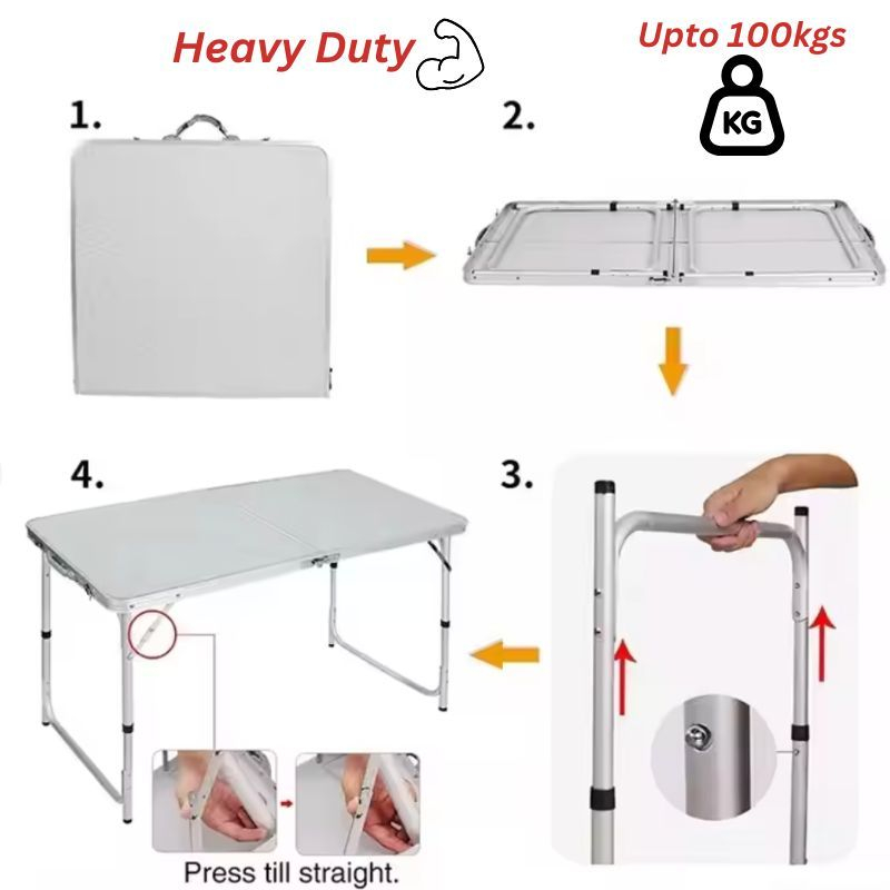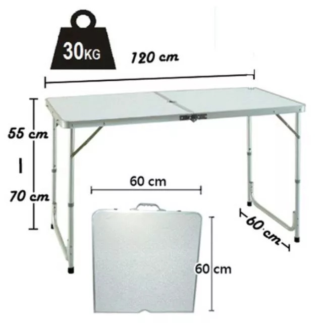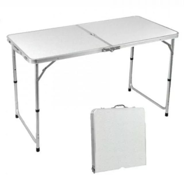 (SG STORE) AFT-101 PORTABLE HEAVY DUTY ALUMINIUM FOLDABLE TABLE WOODEN TOP 120CM X 60CM MULTI PURPOSE OFFICE HOME GARDEN