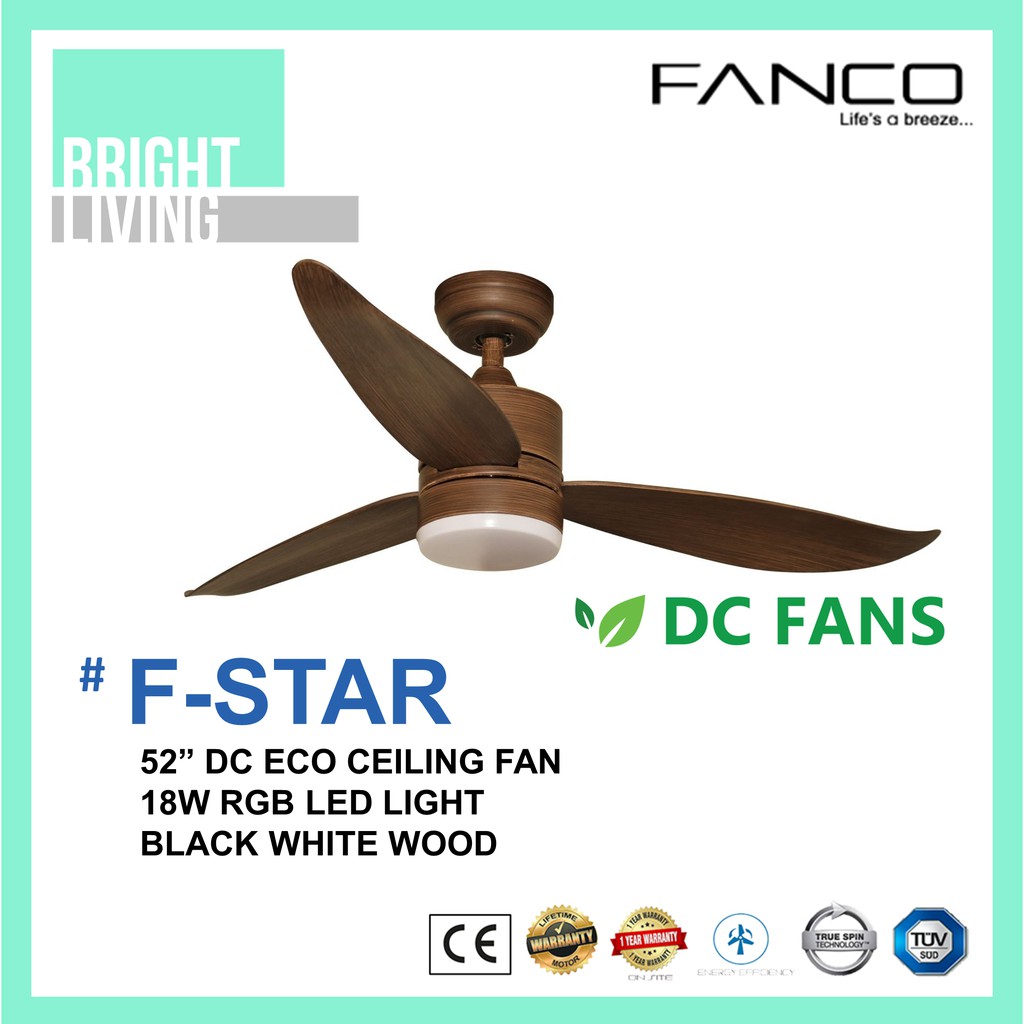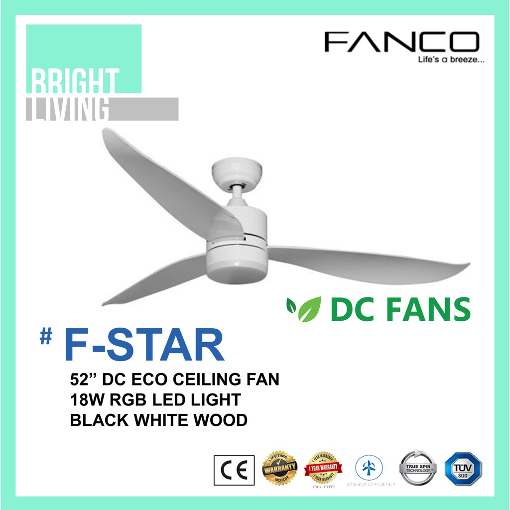 Fanco F-Star 36/46/52" Ceiling Fan with 18W RGB LED Light Kit