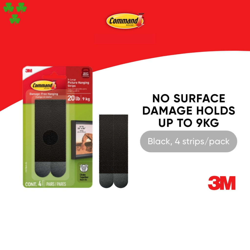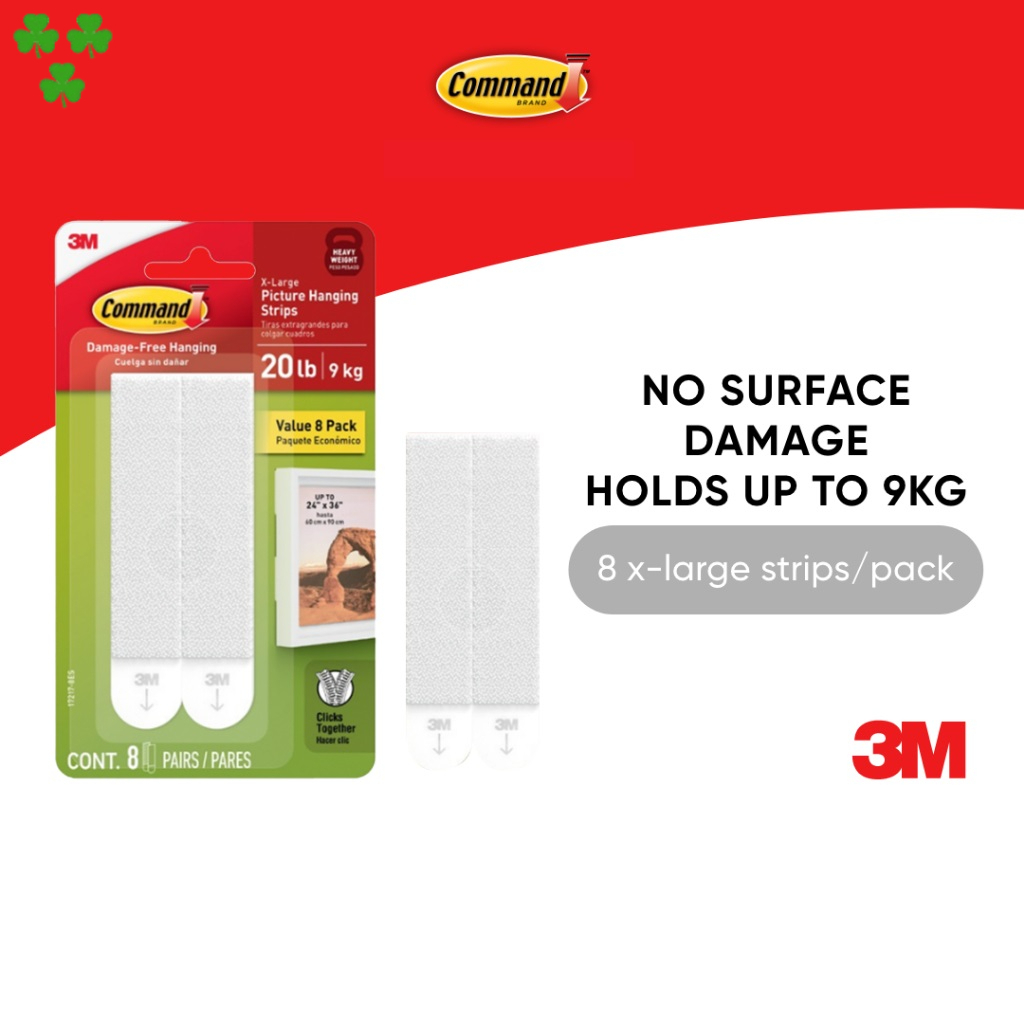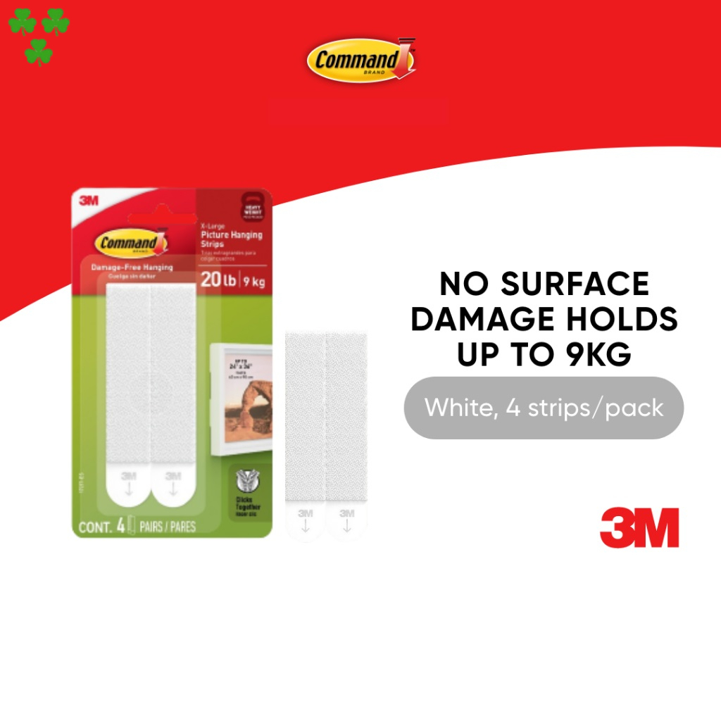3M™ Command™ X-Large Picture Hanging Strips, 17217, No Surface Damage, Holds up to 9Kg, 4 pcs/pack, For decoration