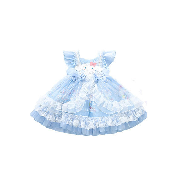 2-12Y Girls' Cinnamoroll Princess Dress 6pcs set Summer kids baby blue blingbling lolita Birthday Dress Performance Dress