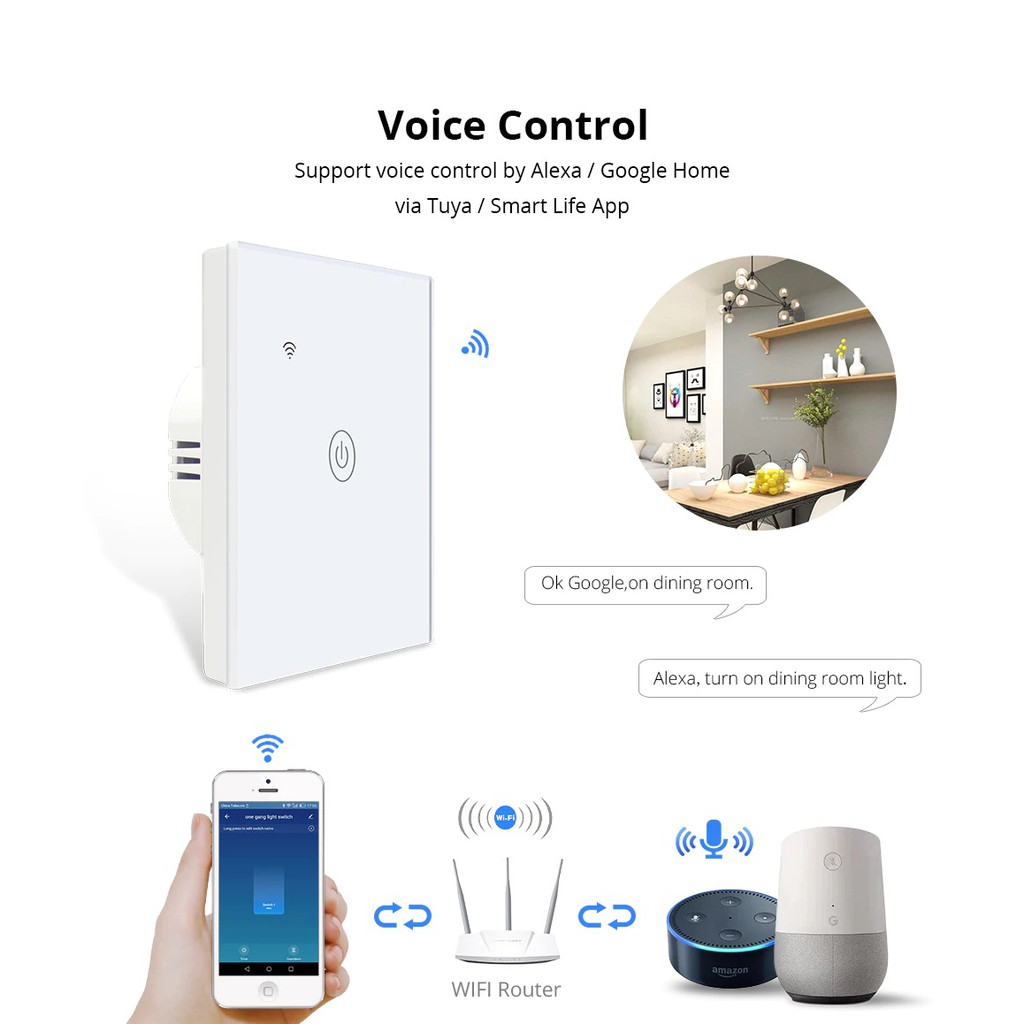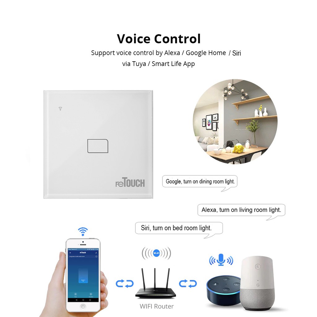 reTouch Tuya Smart Home Zigbee Wireless Switch Tuya Smart Life App supports Alexa [BLACK]