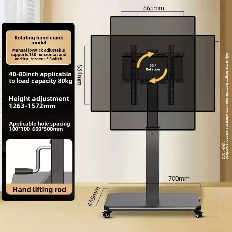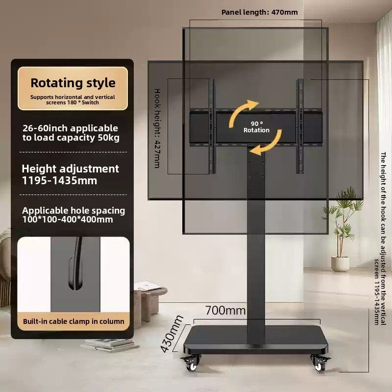 TV Stand Rotating Live Broadcast Floor-Type Movable Horizontal and Vertical Switching Live Broadcast Projection Screen Universal Trolley with Wheels/Mobile TV floor stand