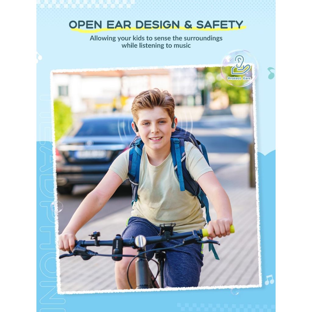 iClever OWS01 Kids Headphones, Bluetooth 5.4 Air Conduction Open Ear Headphones Safe Volume 74&85dBA
