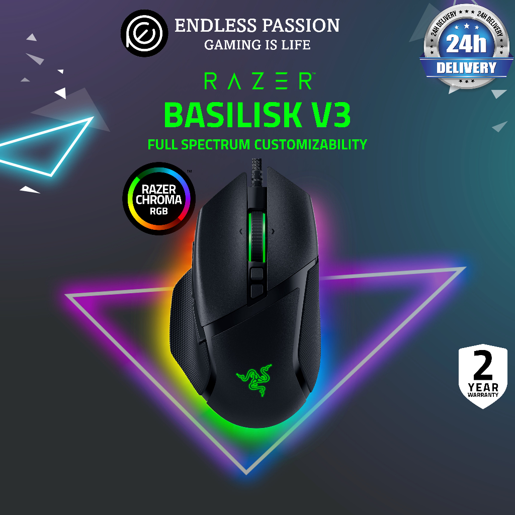 Razer Basilisk V3 - Customizable Wired Ergonomic Gaming Mouse with Razer Chroma RGB