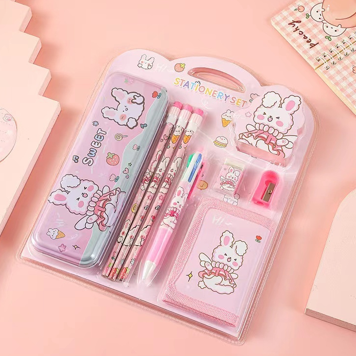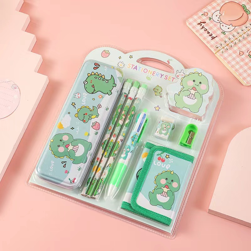 SG Stock 8pcs /Set Kids Cartoon Stationary Set pencil case + pencils+ wallet Goodie bag/Birthday Gift/ Daily Use