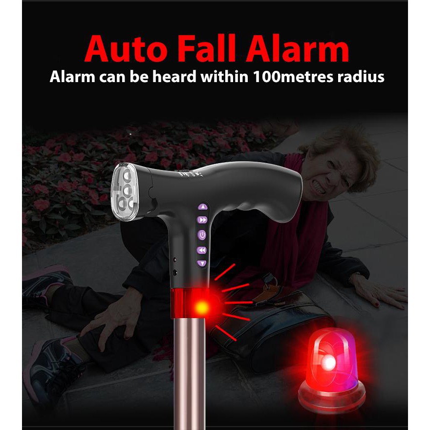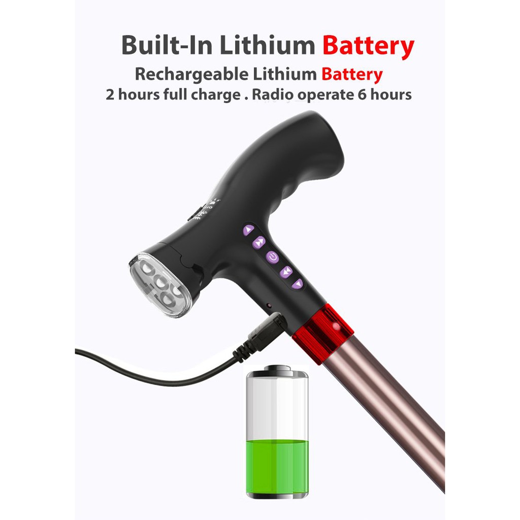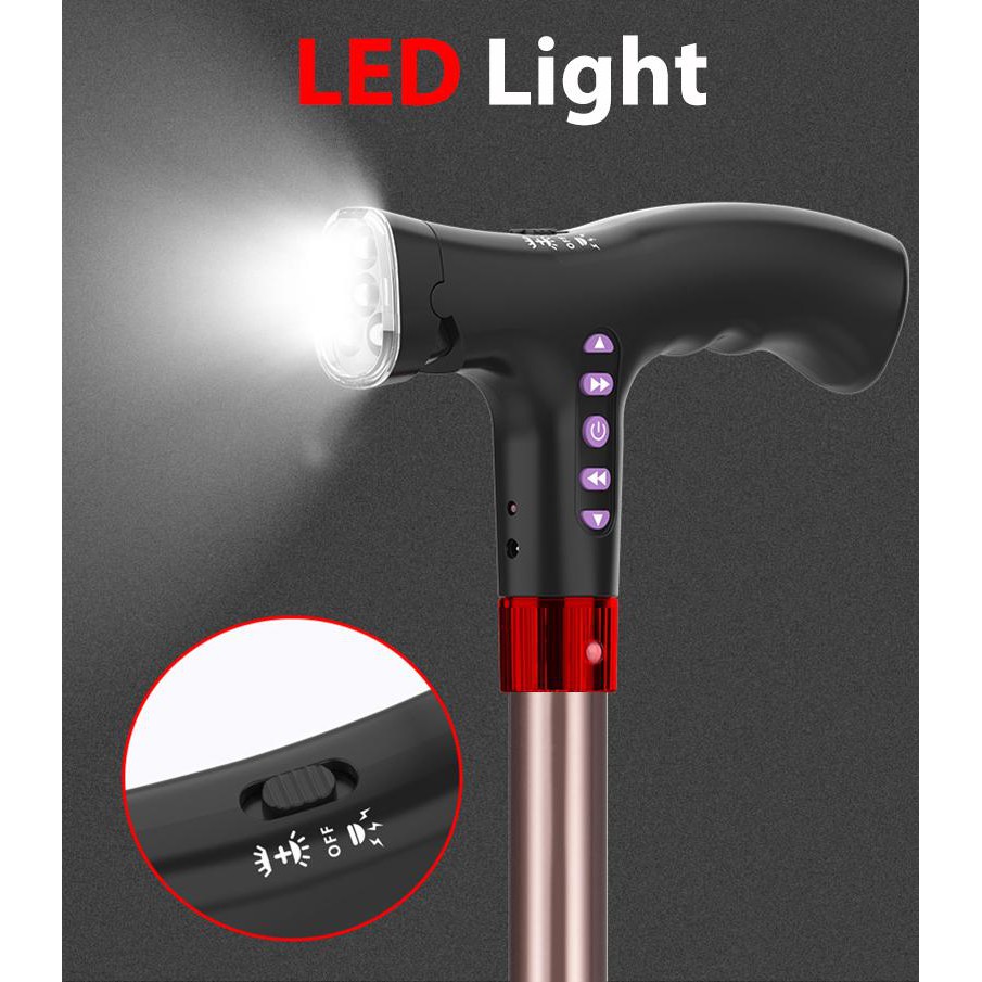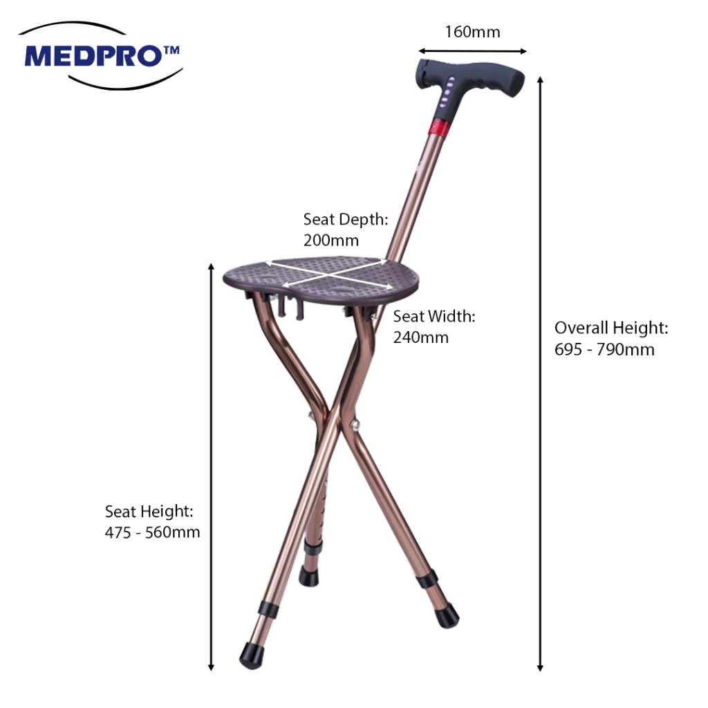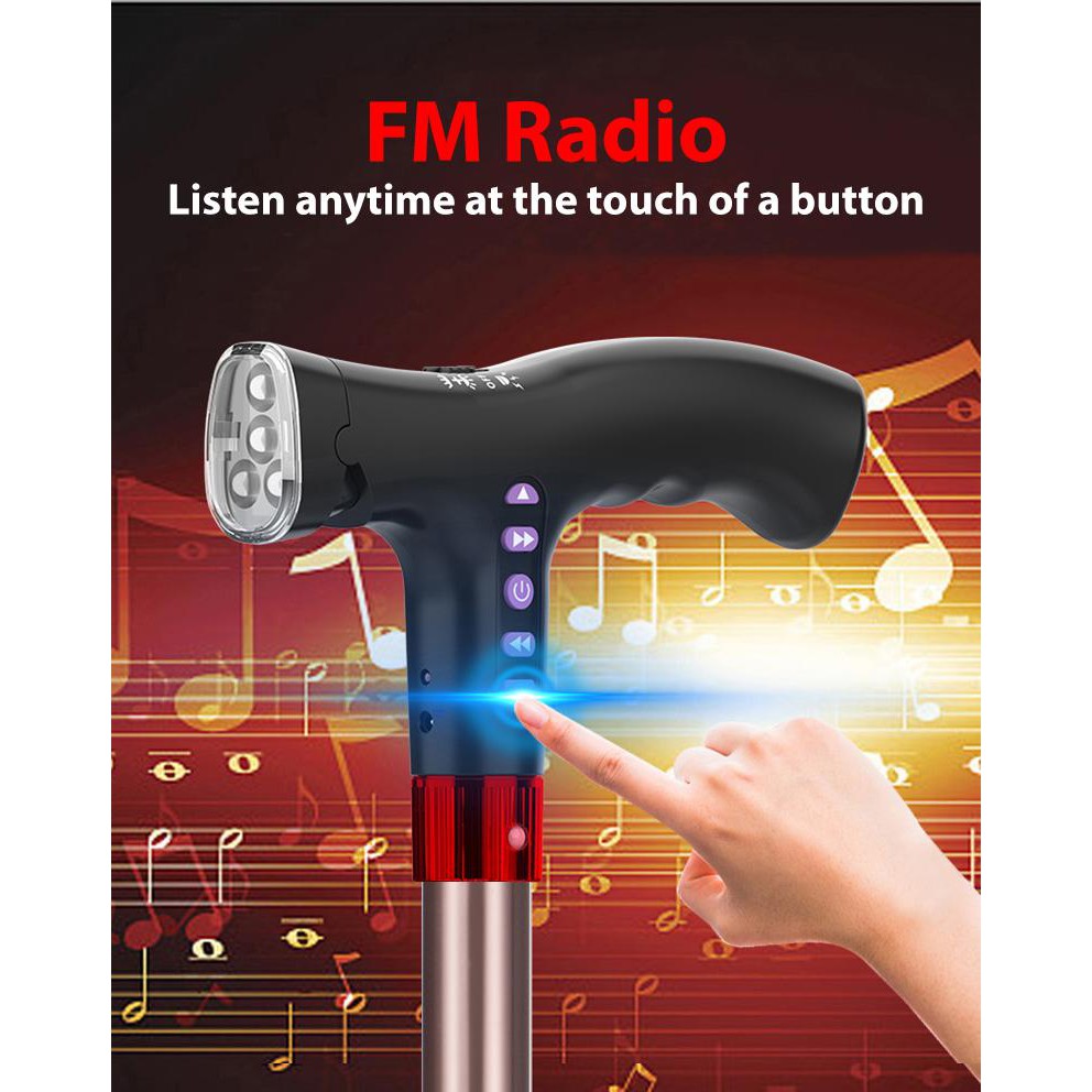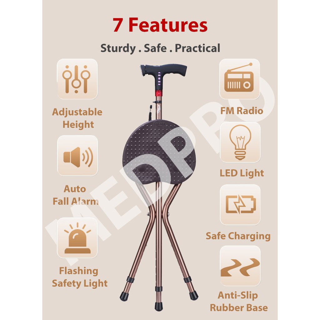 [NEW!] MEDPRO™ Foldable Seat Cane with FM Radio, Night Light, Emergency Alarm & Adjustable Height Seat Medpro