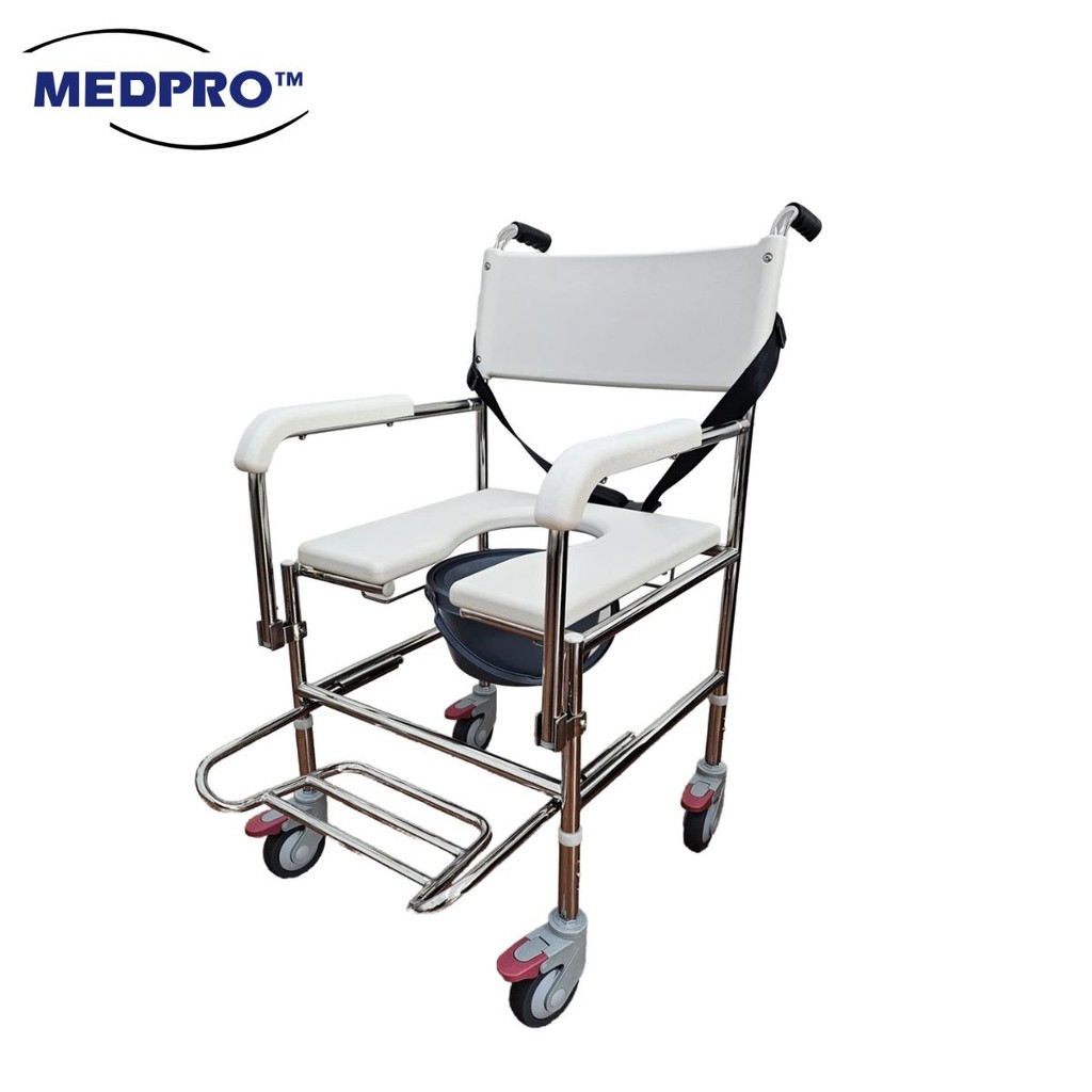 MEDPRO™ Stainless Steel Deluxe U-Shape Height Adjustable Mobile Commode Chair