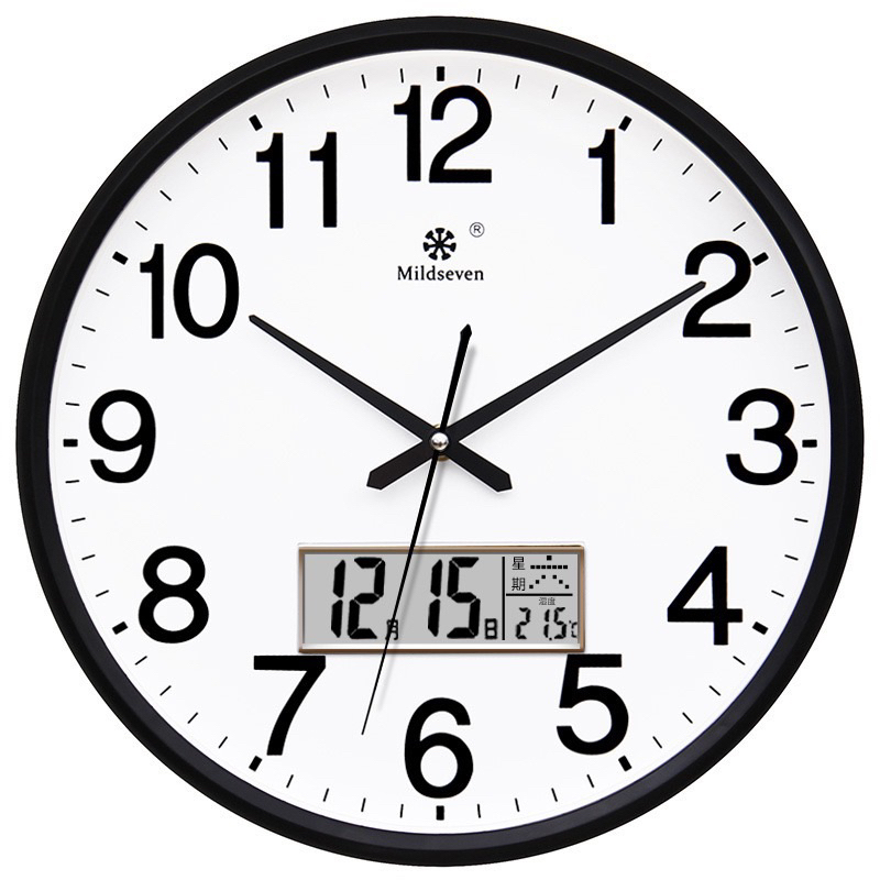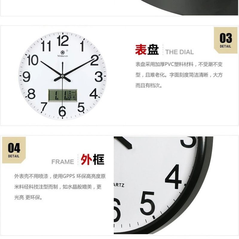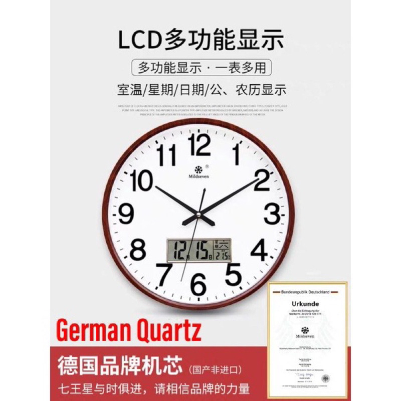 🇸🇬READY STOCK🇸🇬 Wall Clock with LED Lunar Calendar Quartz Silent Plastic Frame Glass Cover for Living Room