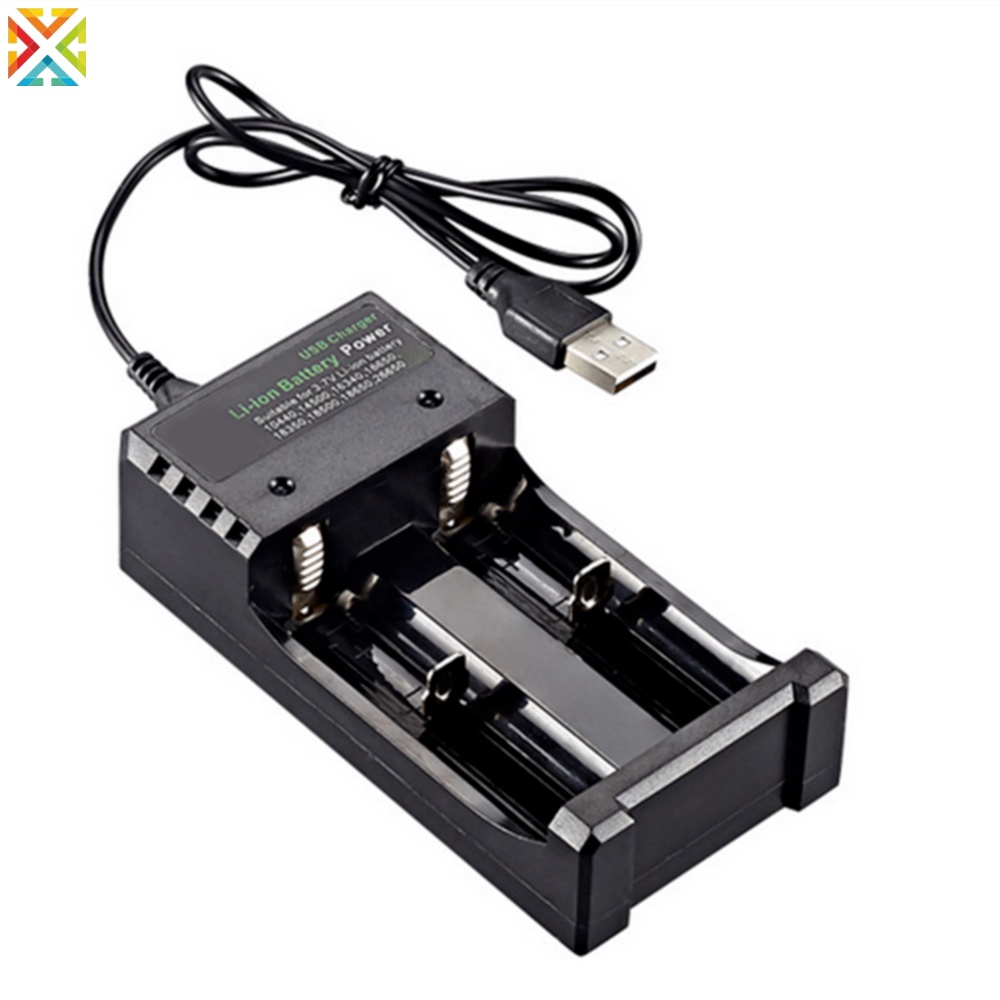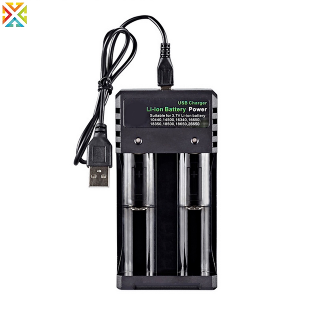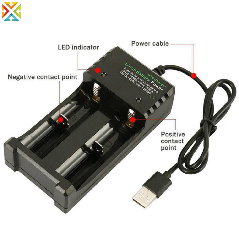 Universal USB Dual Slot Battery Charger For 3.7V 18650 16340 14500 26650 Li-ion