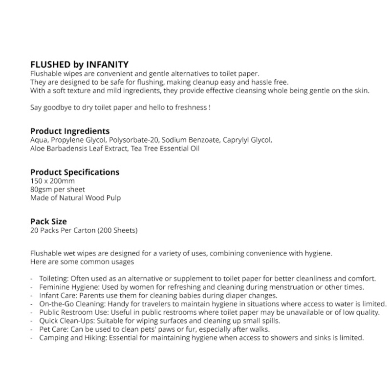 FLUSHED / Flushable Toilet Wipes / Feminine Wipes / Biodegradable / Suitable for All Ages / 99.9% Water 10s x 20packets