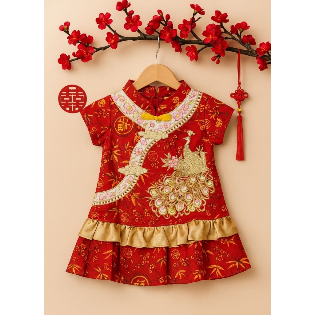 Chinese New Year Cheongsam Dress for Girls, CNY Clothes Kids Cheongsam Dress Girl Dress