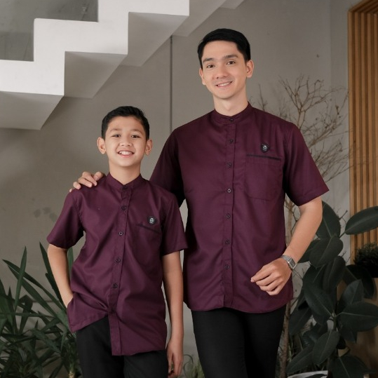 Latest Short Sleeve Mahogany Father and Son Couple Shirt 2026