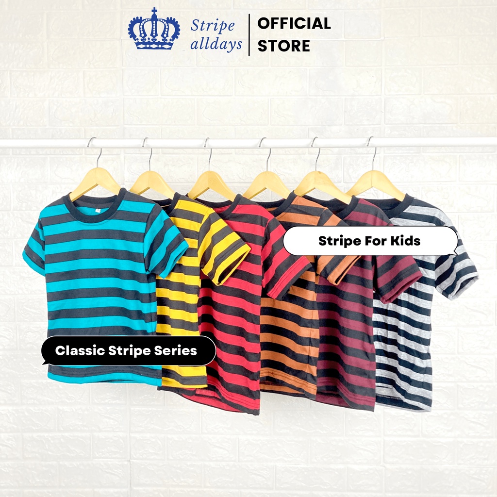 12.12 Stripealldays - Classic V2 Series Stripe T-Shirt for Boys and Girls Short Sleeve Cotton CVC 24S Size 1-8 Years