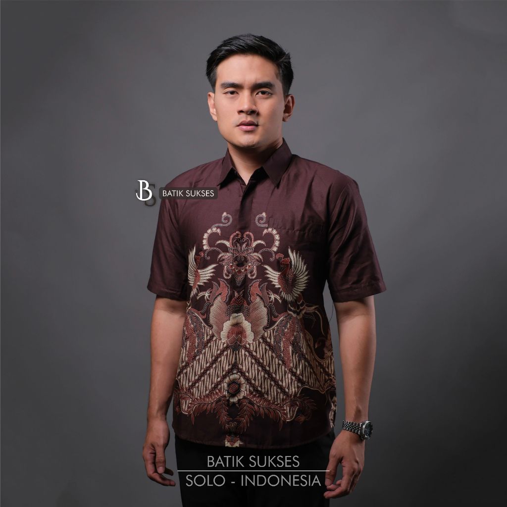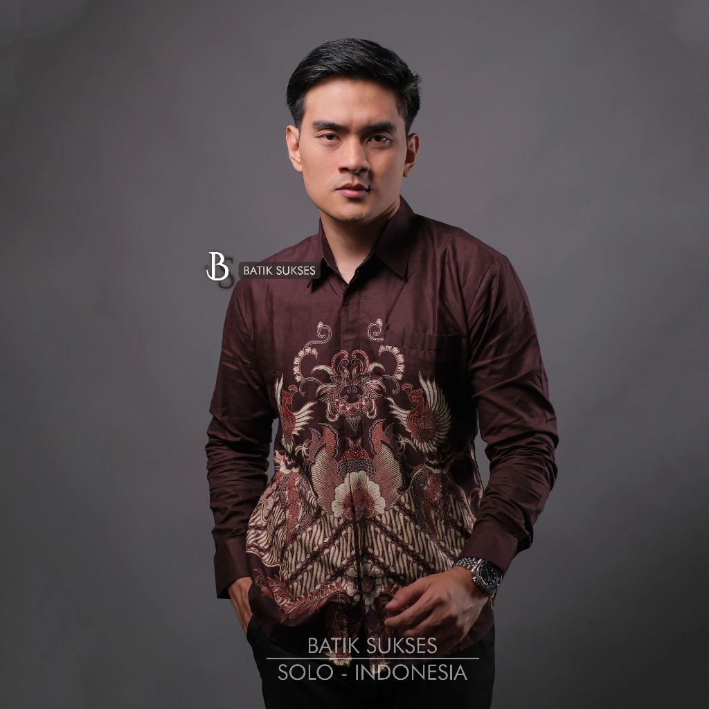 KATUN KEMEJA PRABU MAHOGANY Premium Men's Batik Shirt with Lining, Long and Short Sleeves, Smooth Cotton