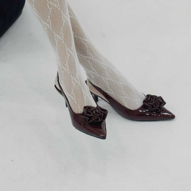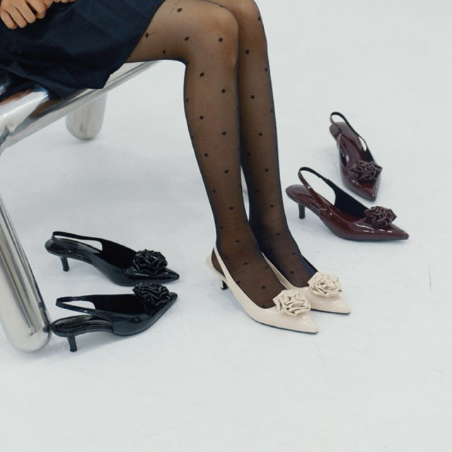 MAWAR PUFF IT UP 田 Rosé Pointed Heels Floral Heels Rose Heels Stiletto Heels
