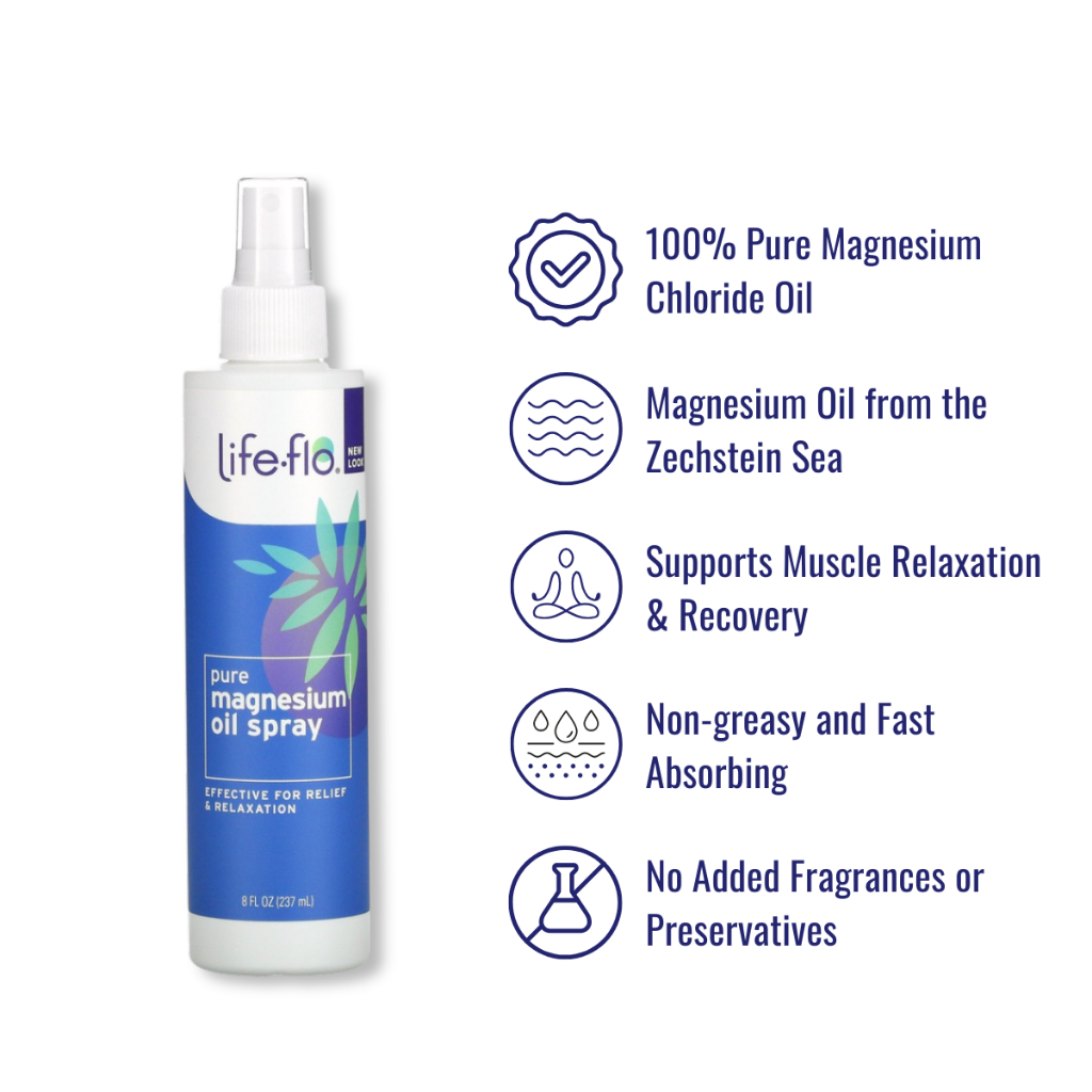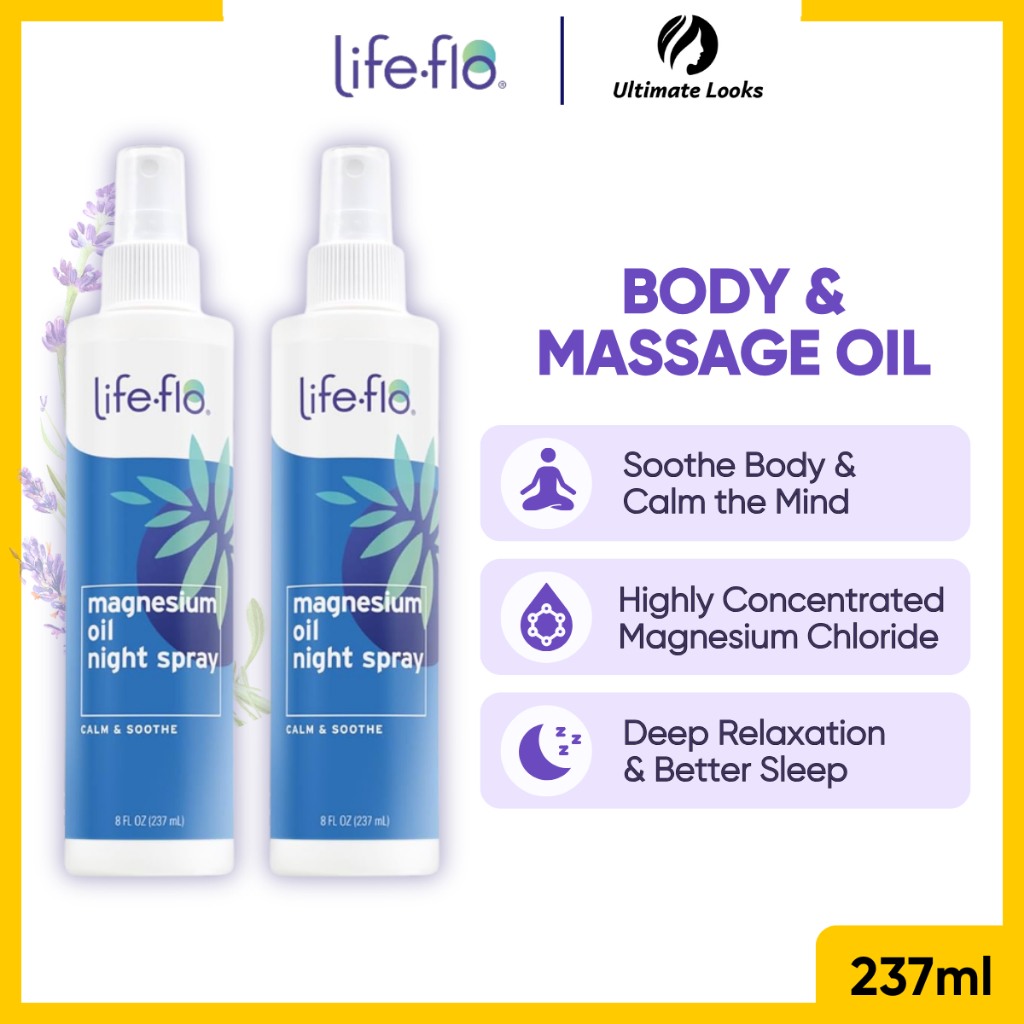 Life-flo Pure Magnesium Oil Spray/Night Spray, 100% Pure Magnesium, Soothing, Relaxing Spray for Muscle/Joint, 237ml