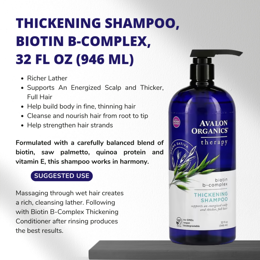 Avalon Organics, Thickening Shampoo, Biotin B Complex (414-946 ml) Thickening Conditioner, 14oz (397g), Nourish, Hydrate