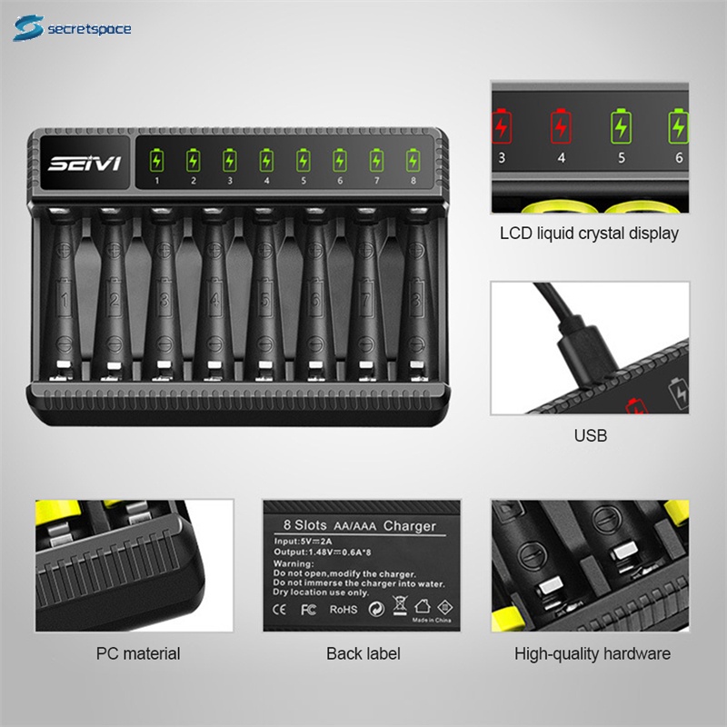 ST Beston 8 Slot Fast Smart Intelligent Lithium Battery Charger for 1.5V AA AAA Rechargeable Battery Quick Charger