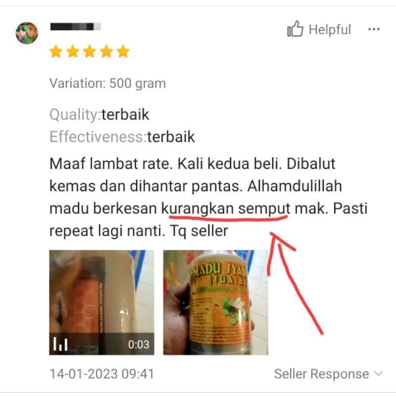 Madu Tualang Hutan Madu Lebah Liar Madu SYAIRTIMUR 1KG 500G 250G