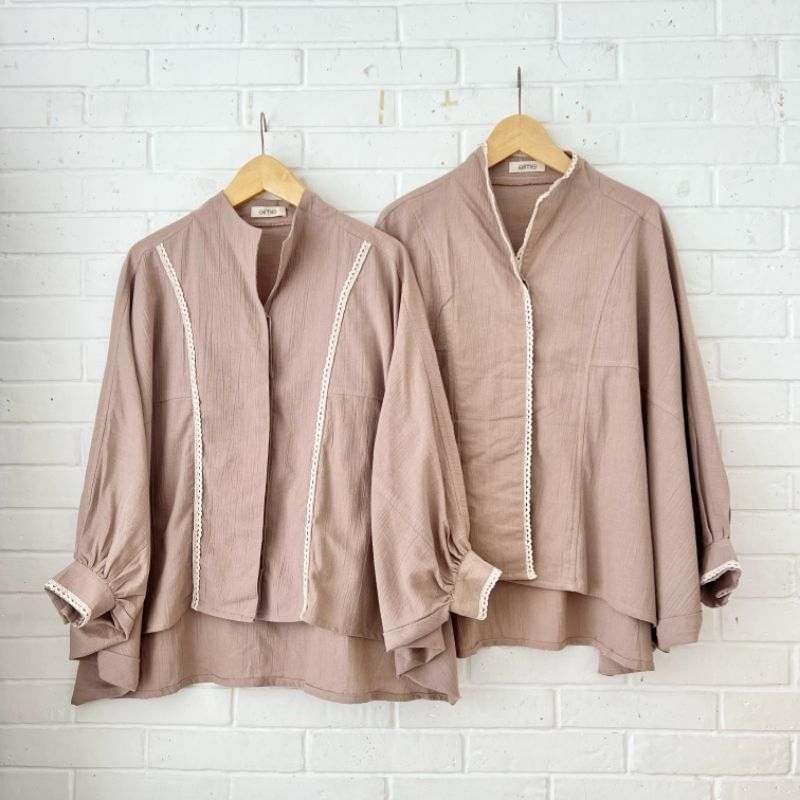 KATUN GHEA Batwing Blouse (Women's Oversized Cotton Linen Patterned Top) Blouse Women Ladies Blouse