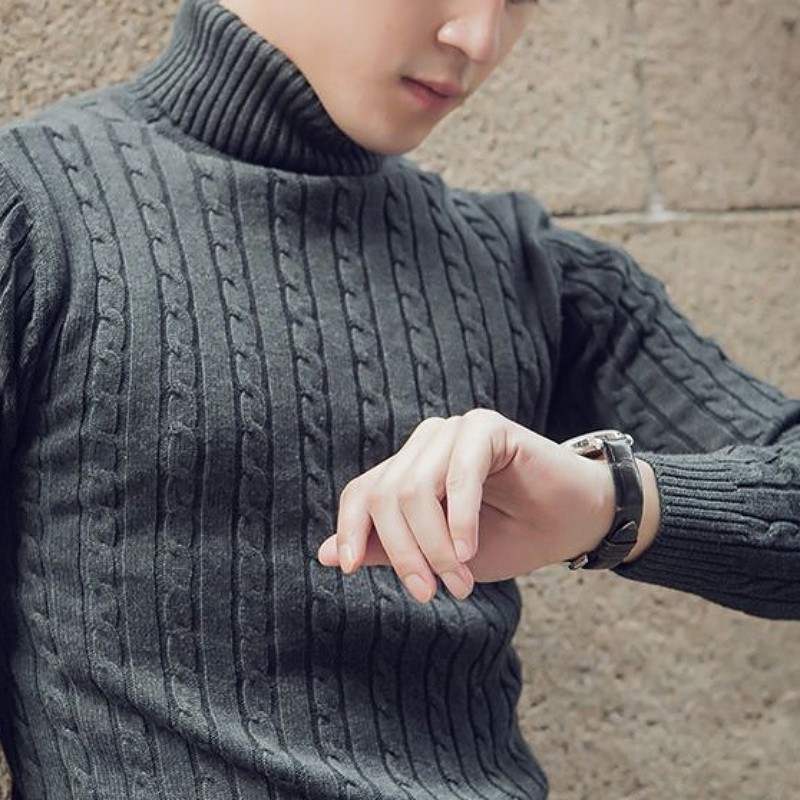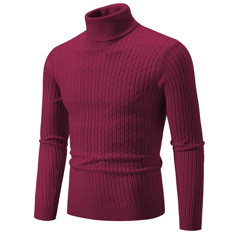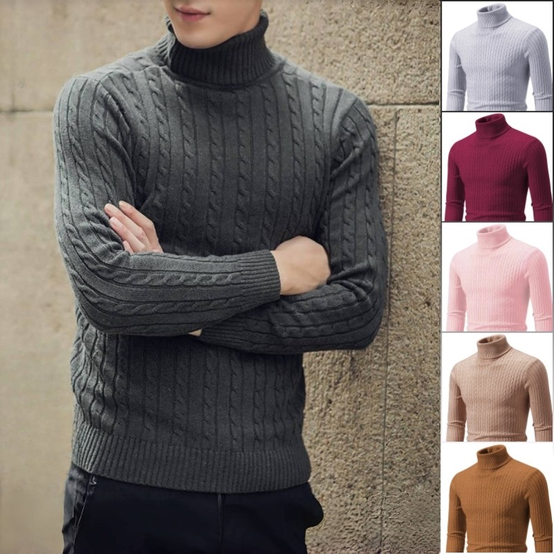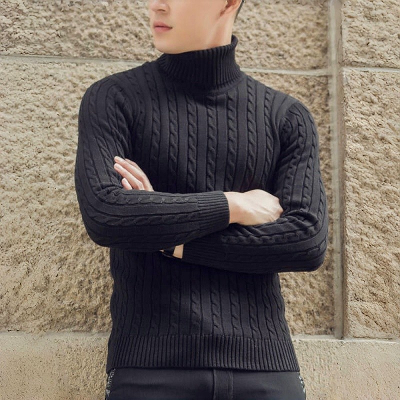 Plus Size Mens Turtleneck Slim Fit Sweater Long Sleeve Cable Knitted Twisted Pullover Soft Casual Winter KnitTops for Men