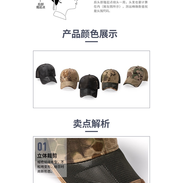 baseball cap summer camouflage mesh thin big size 60+ cm dad hat fashion outdoor caps