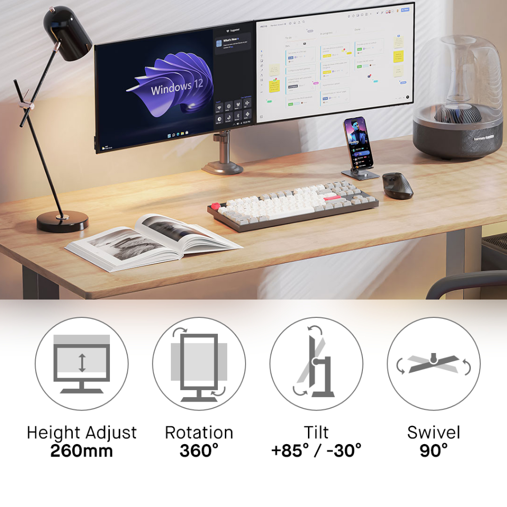 North Bayou NB, Monitor Stand, Monitor Bracket, Dual Monitor Arm - NB H180 - Full Motion