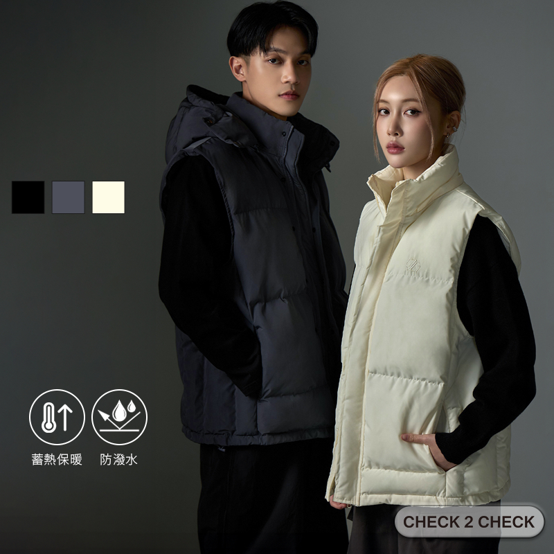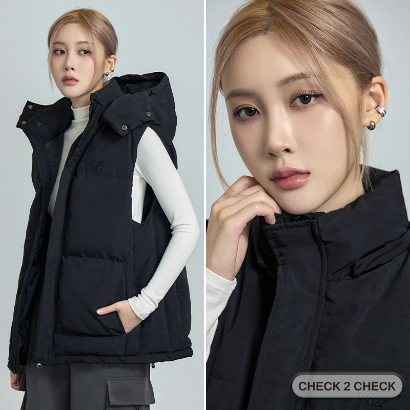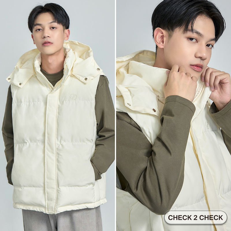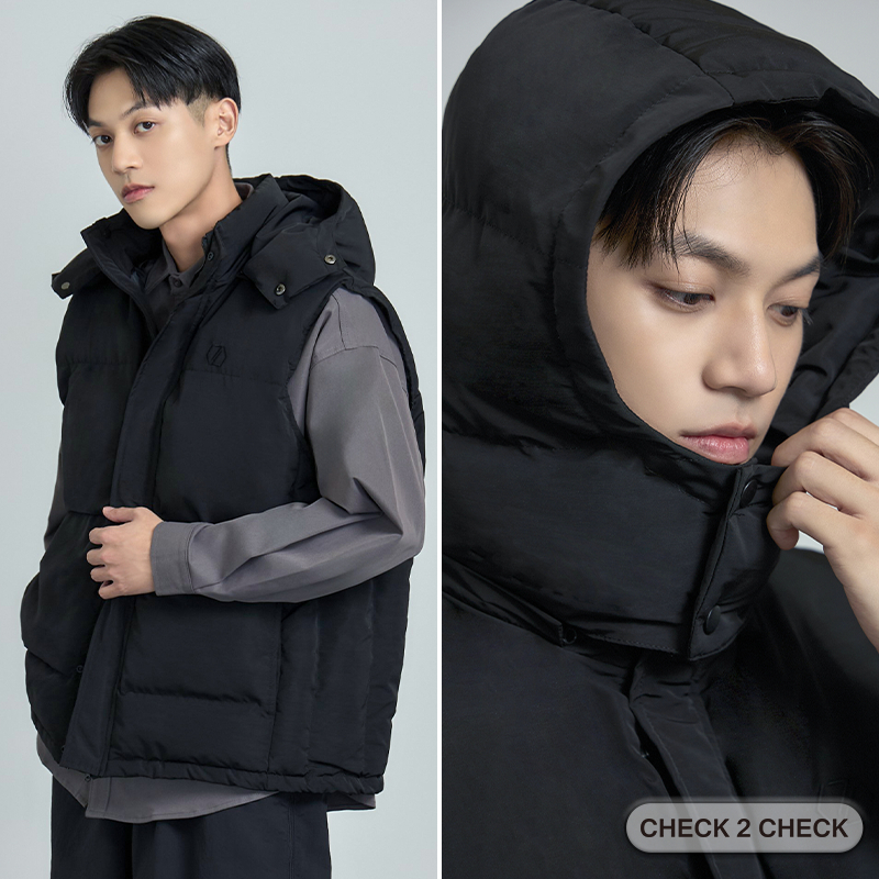 Check2Check-Dry Burning Detachable Extremely Front Vest Removable Hat Down Cotton Stand-Up Collar Warm Jacket [CB0025204】