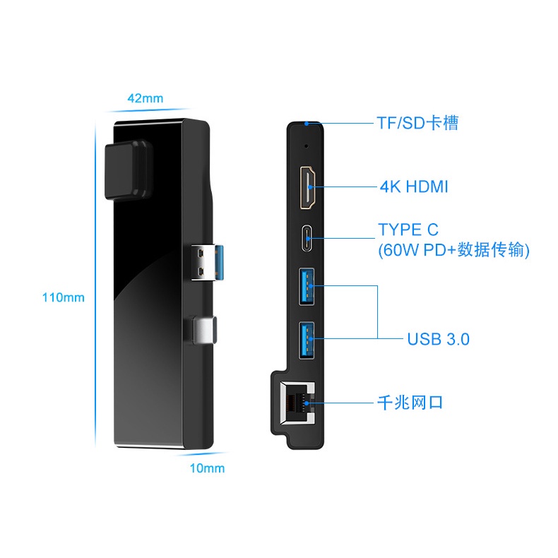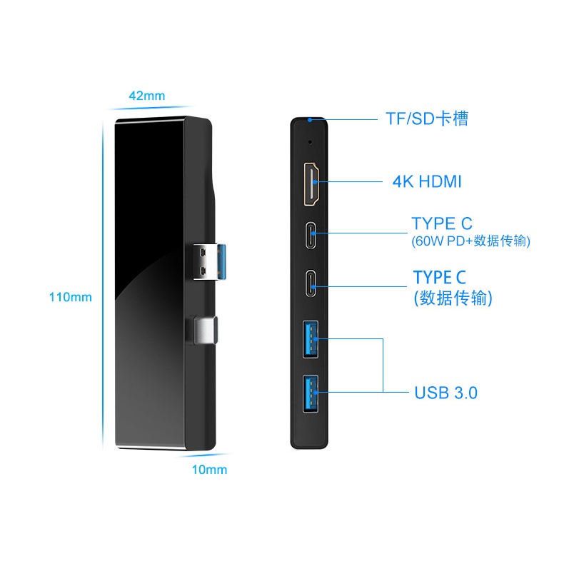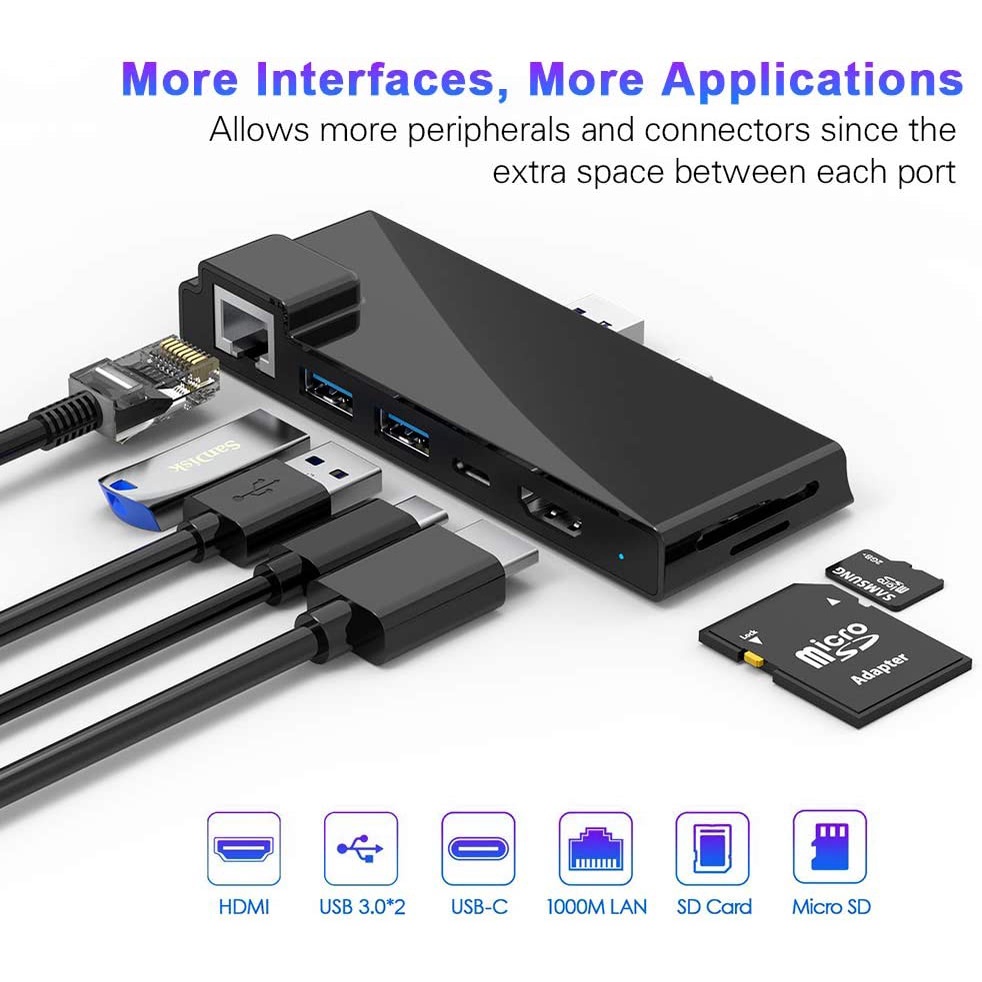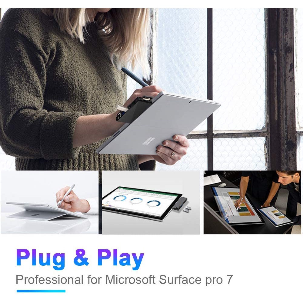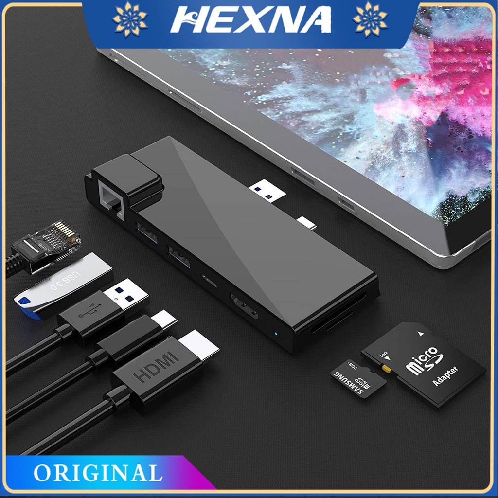 [Hexna] For Microsoft Surface Pro 7 Dock Hub, 7-in-2 Surface Pro 7 2019 Docking Station Adapter with 4K HDMI, 2 USB 3.0 Port(5Gbps), SD/TF Card Reader