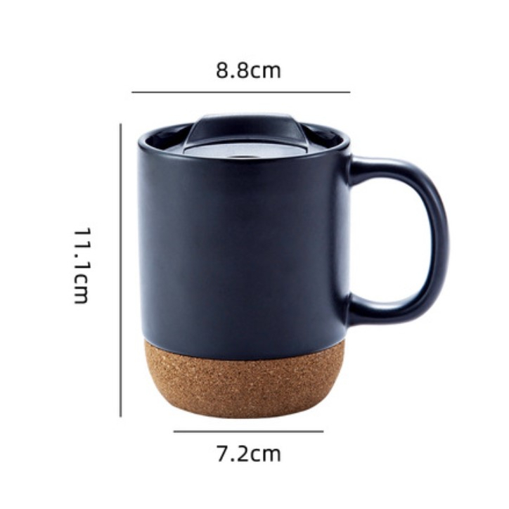 ALEXTEO Ceramic Mug with Insulated Cork Base and Lid (350ml)