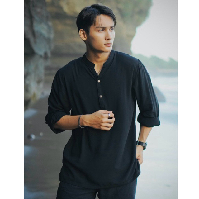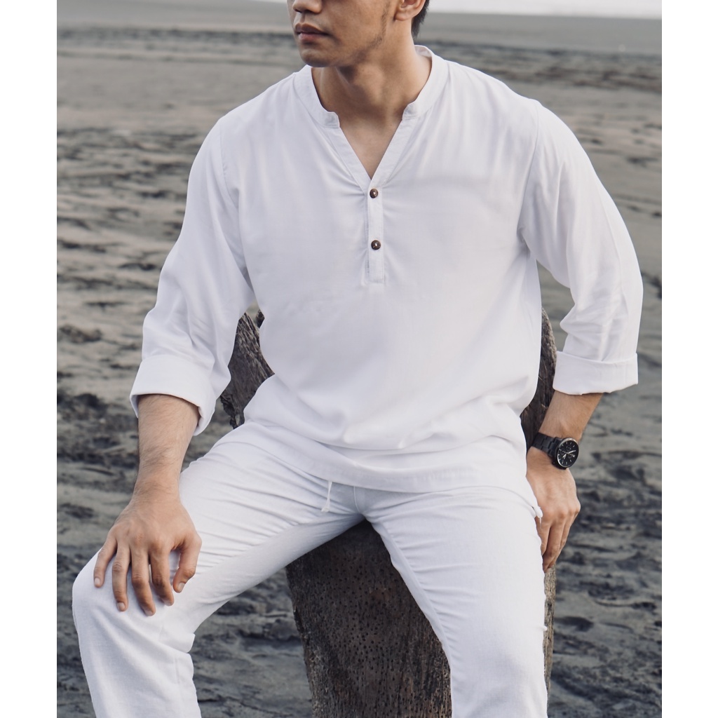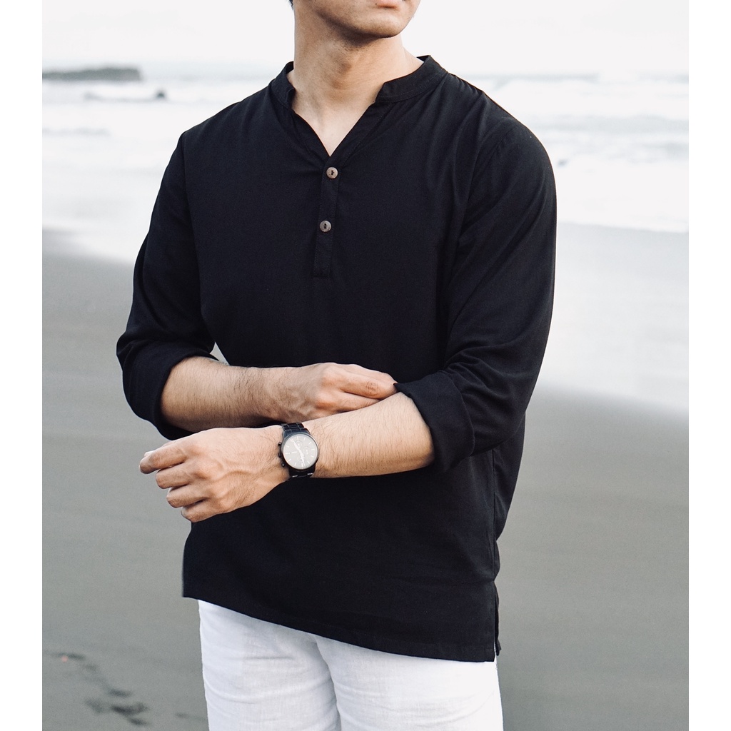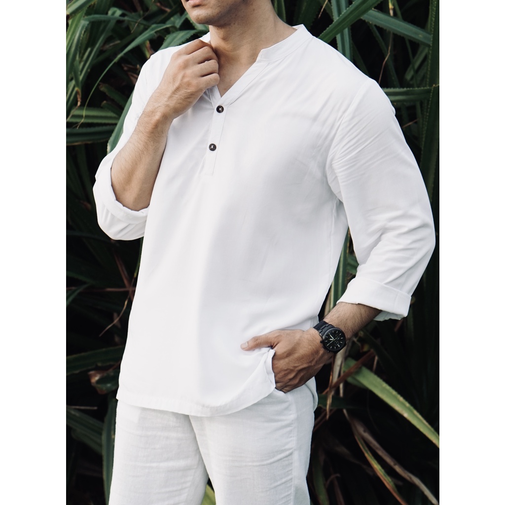 BEACHWELL Men's Rayon Viscose Black and White Plain Premium Shirt - Semanggi Sunset Groove Shirt